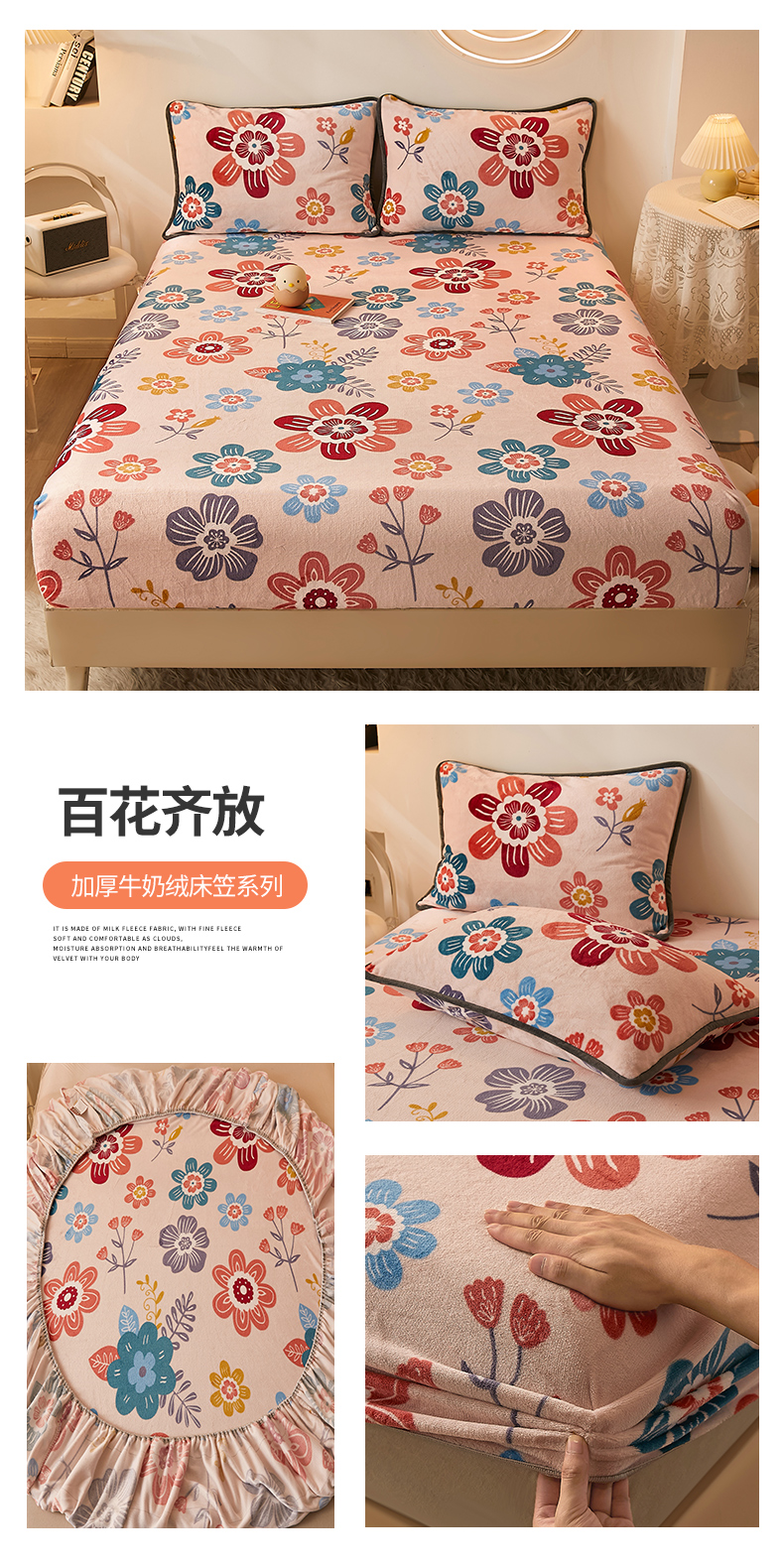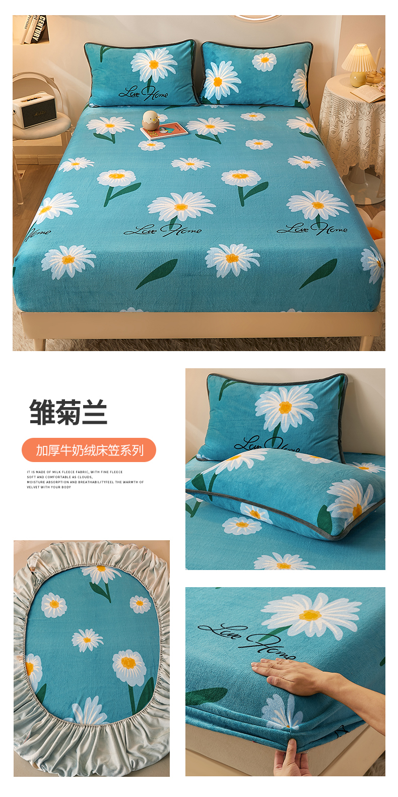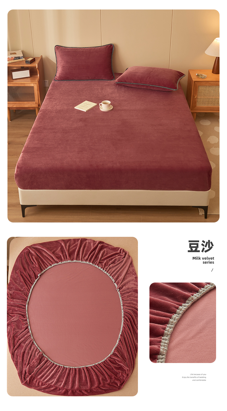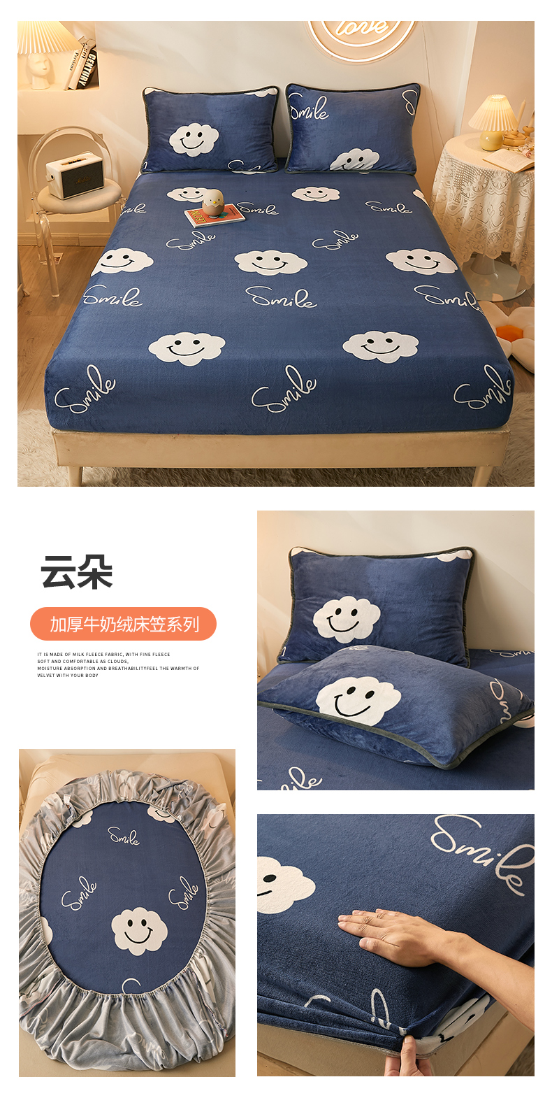 (总)耐思家纺 2023新款牛奶绒单面床笠 床笠 三件套