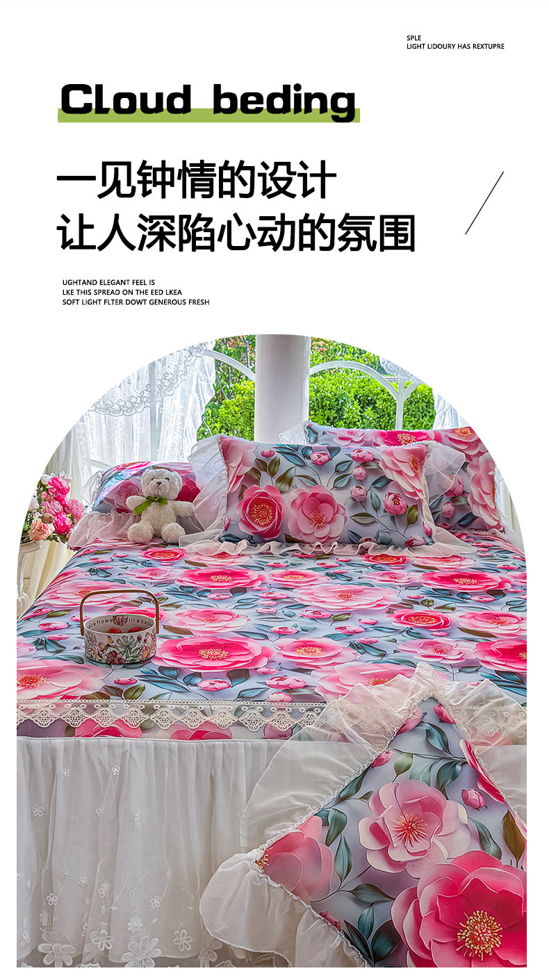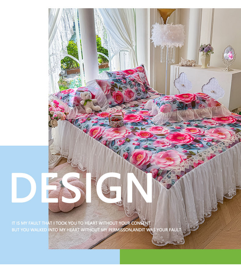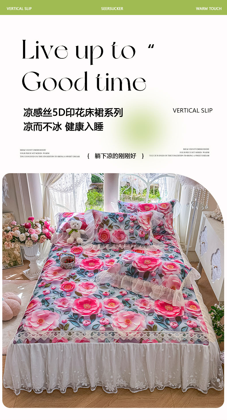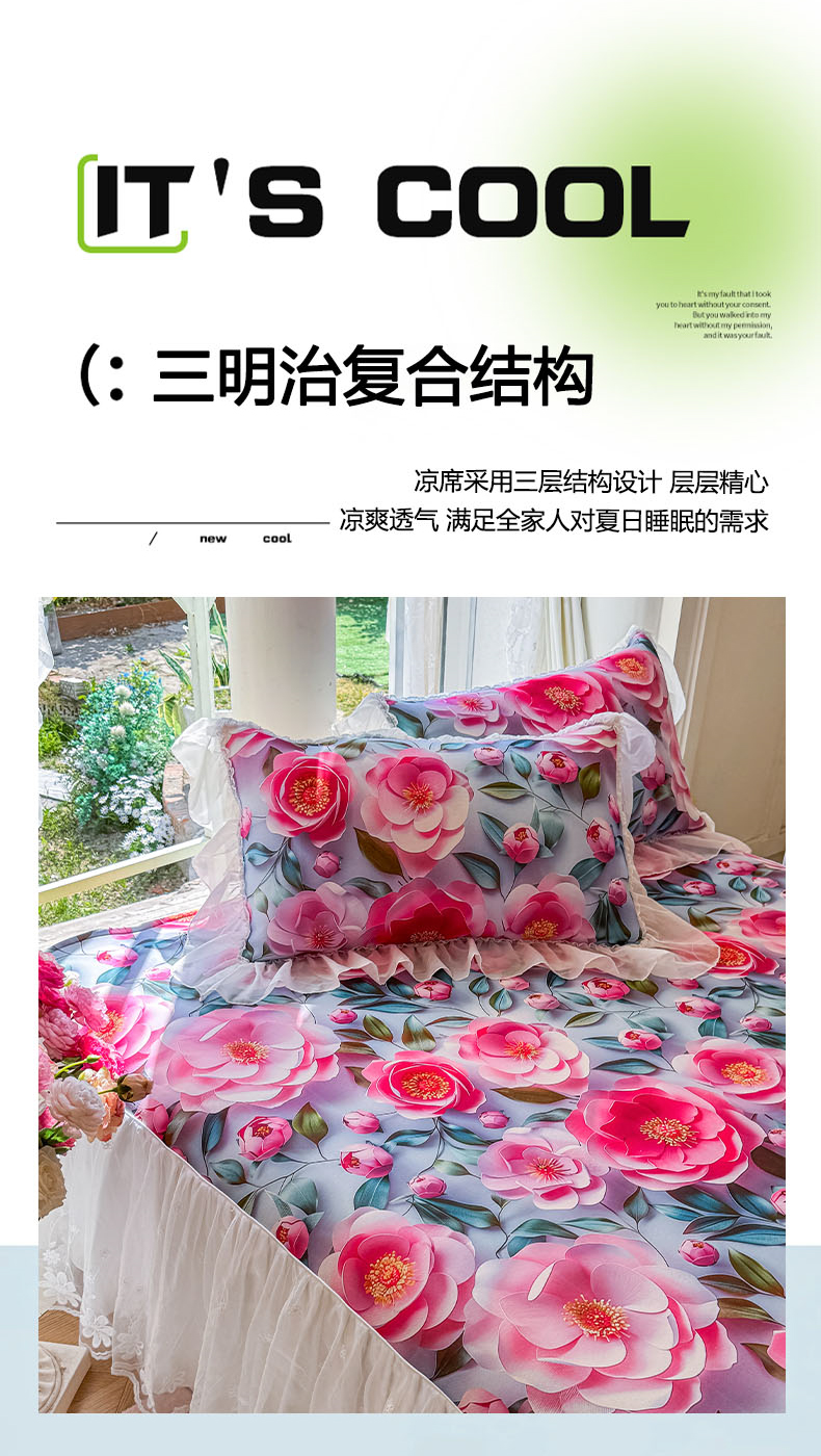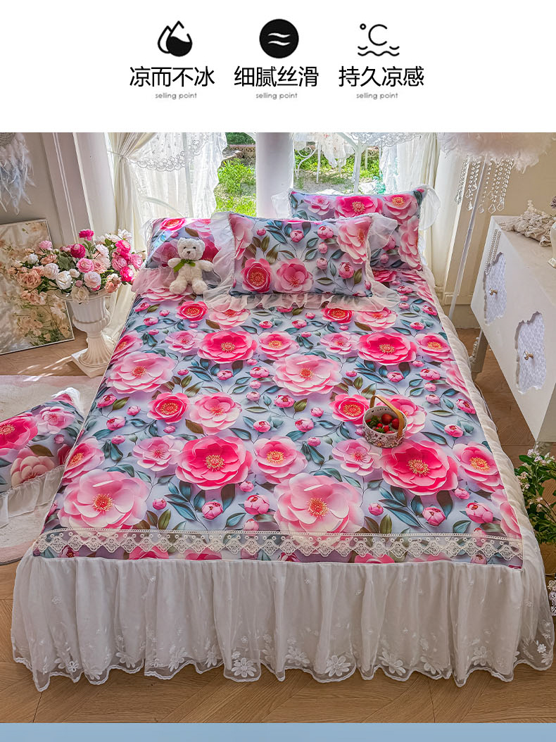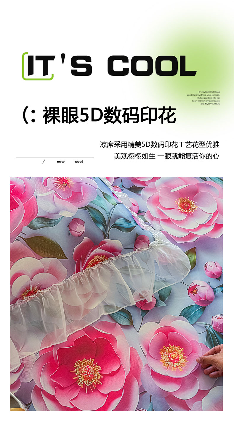 商品名称:罗艺轩 2025新款冰丝5D印花床裙凉席席子 爱心物语
