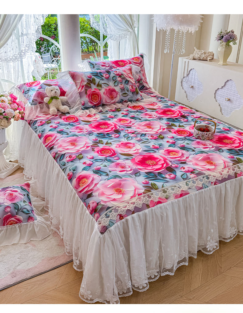 罗艺轩 2025新款冰丝5D印花床裙凉席席子 爱心物语
