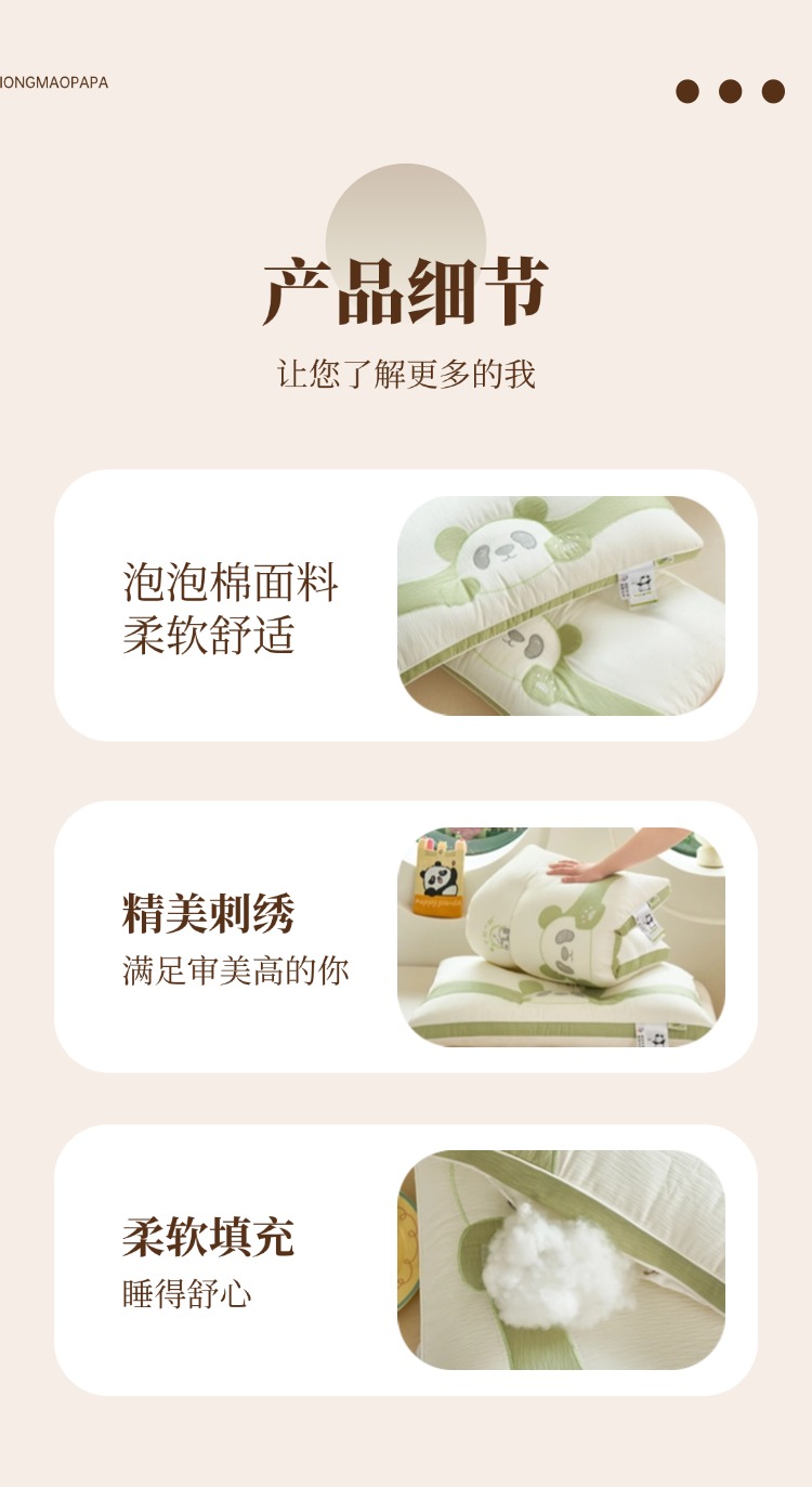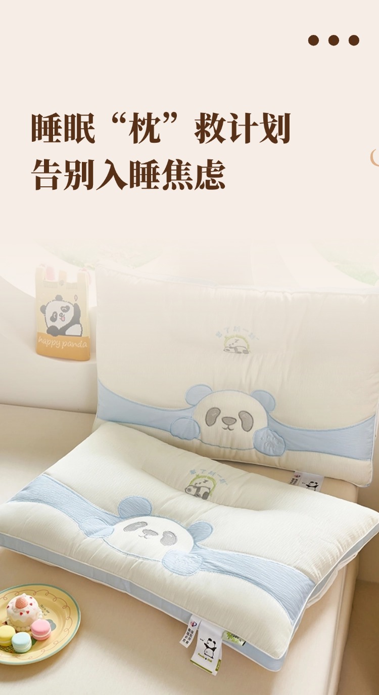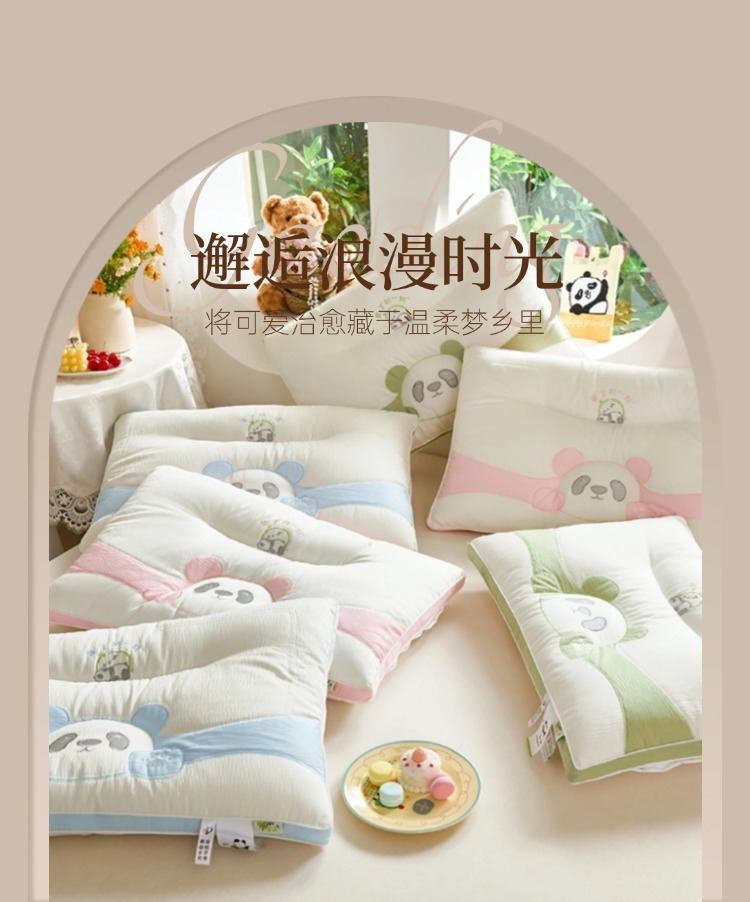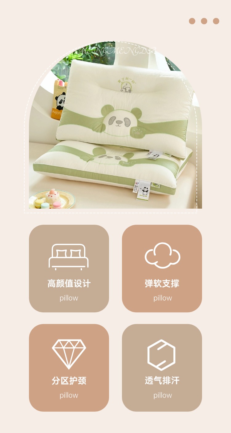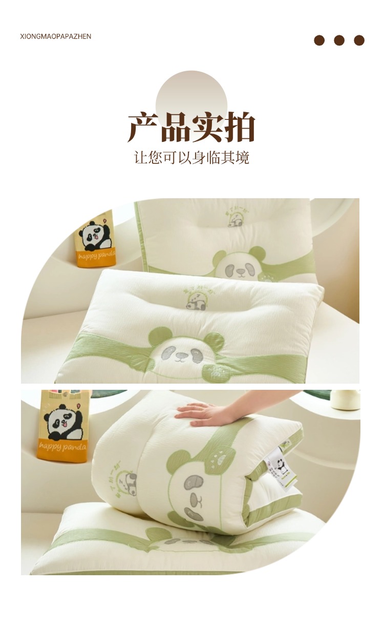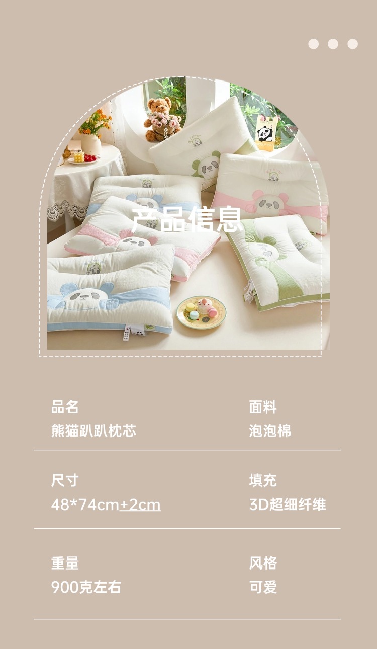 商品名称:(总)幸运草 2025新款熊猫趴趴可爱情侣枕头泡泡棉柔软亲肤护颈枕芯