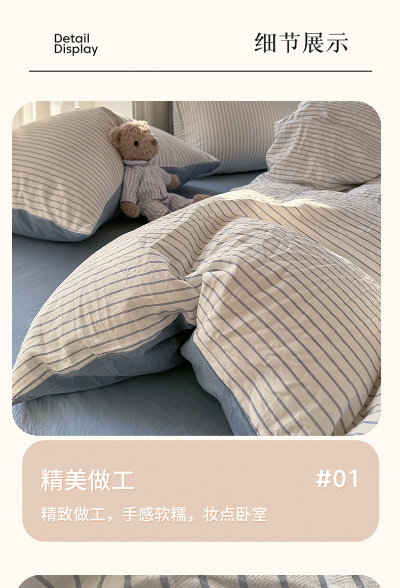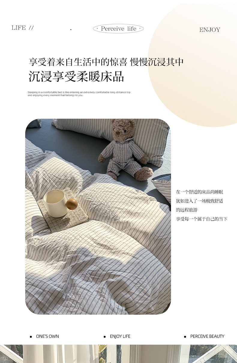 (总)缦绣阁家纺 2025新款无印风条纹水洗磨毛四件套简约风4件套学生宿舍三件套,良品条纹粉玉,良品条纹果绿,良品条纹咖,良品条纹蓝,良品条纹奶黄,良品条纹青绿,良品条纹驼,良品条纹紫