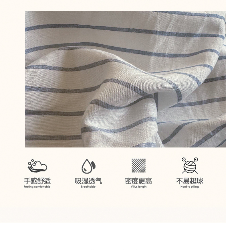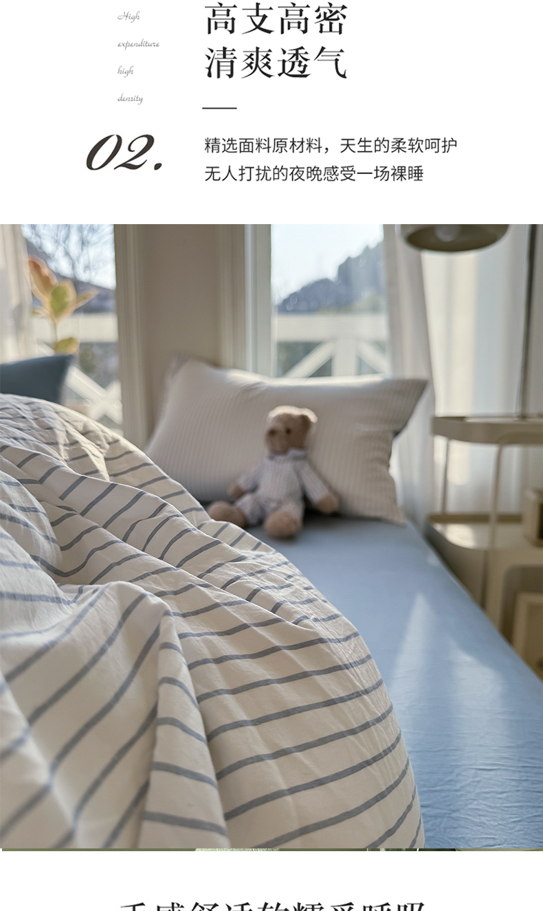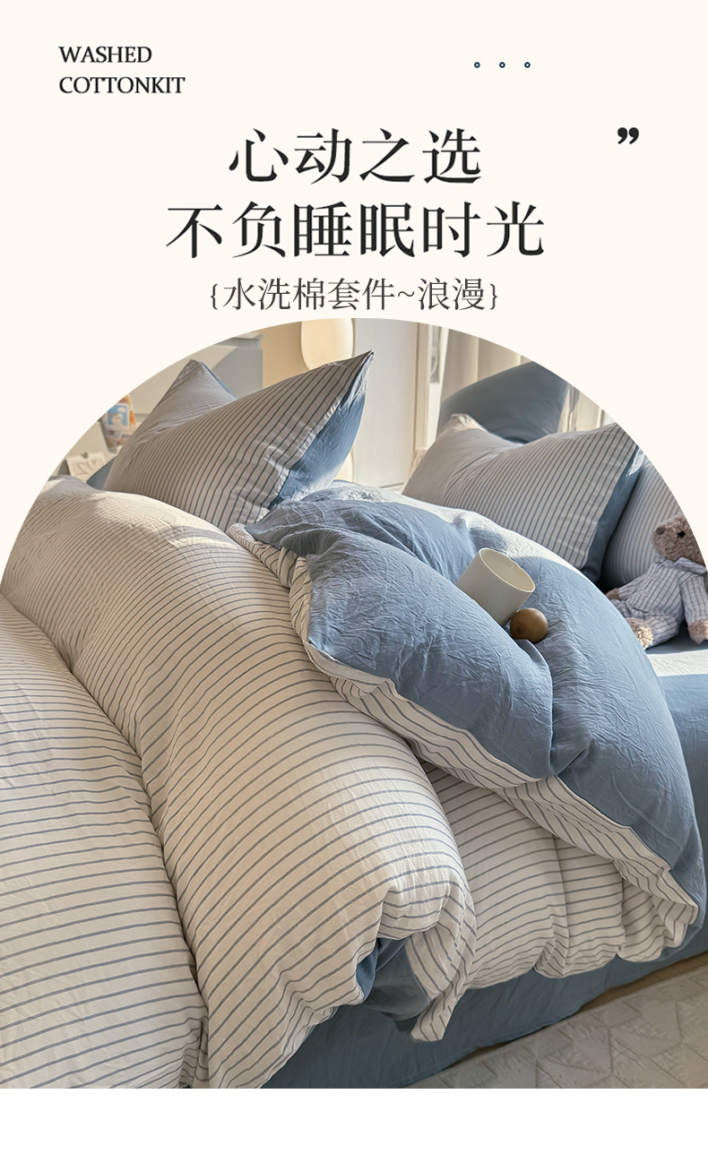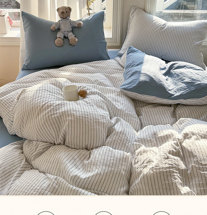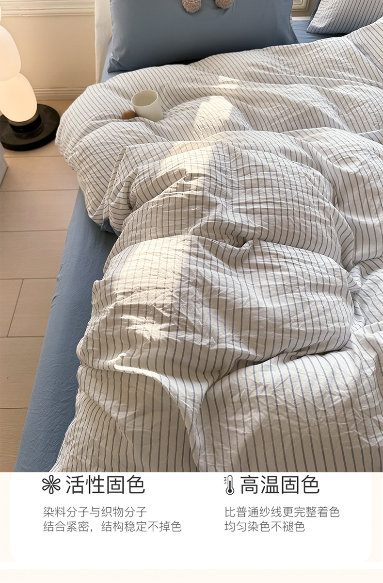 商品名称:缦绣阁家纺 2025新款无印风条纹水洗磨毛四件套简约风4件套学生宿舍三件套 良品条纹蓝