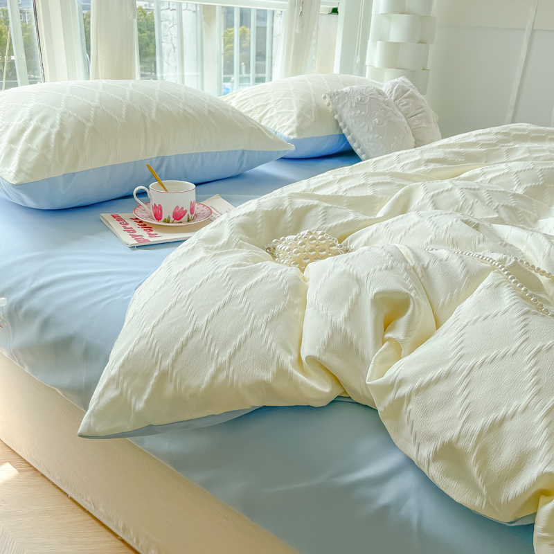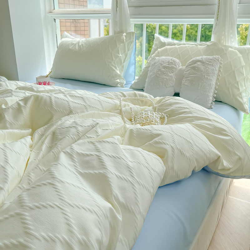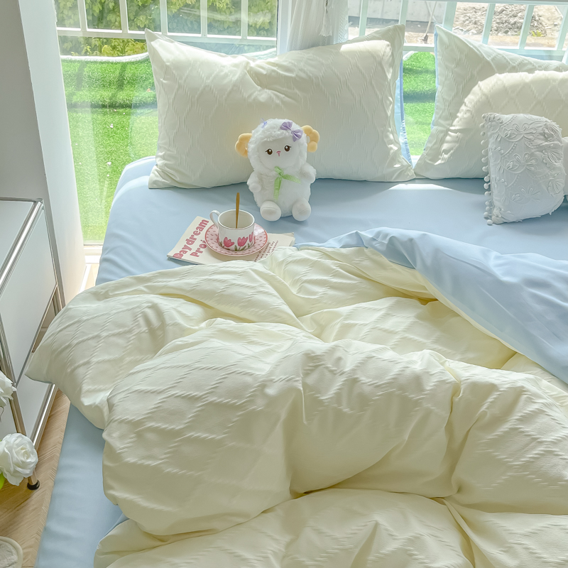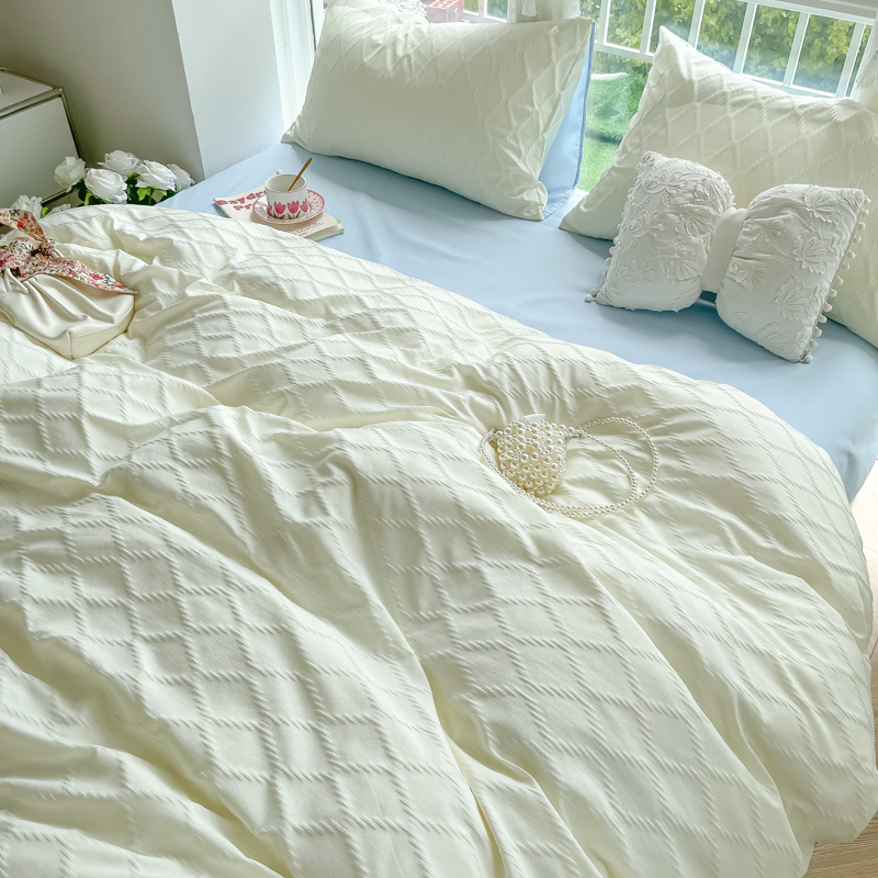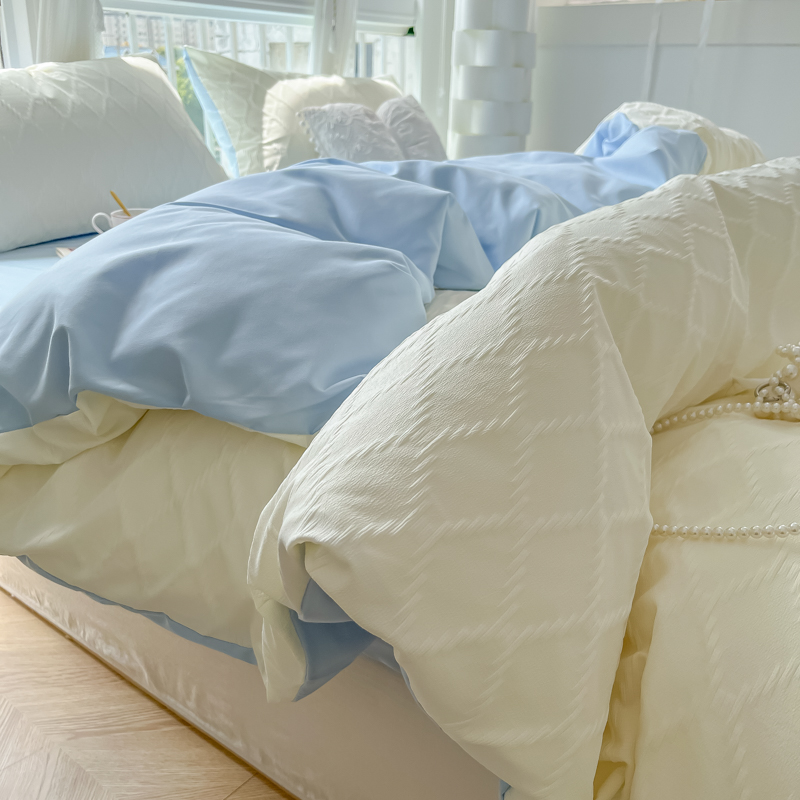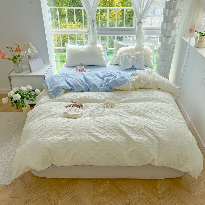 当前位置: 91家纺网 > 商品网购 > 床品套件 > 四件套 > 其它四件套 > 缦绣阁家纺 2025新款AB版菱形格简约提花四件套小清新床单款床笠款4件套生宿舍三件套 菱形格-芝士+浅兰