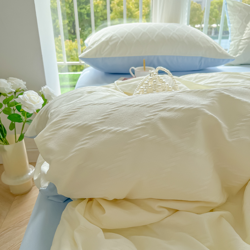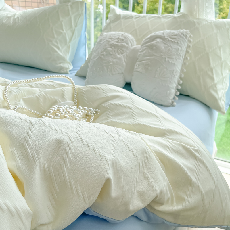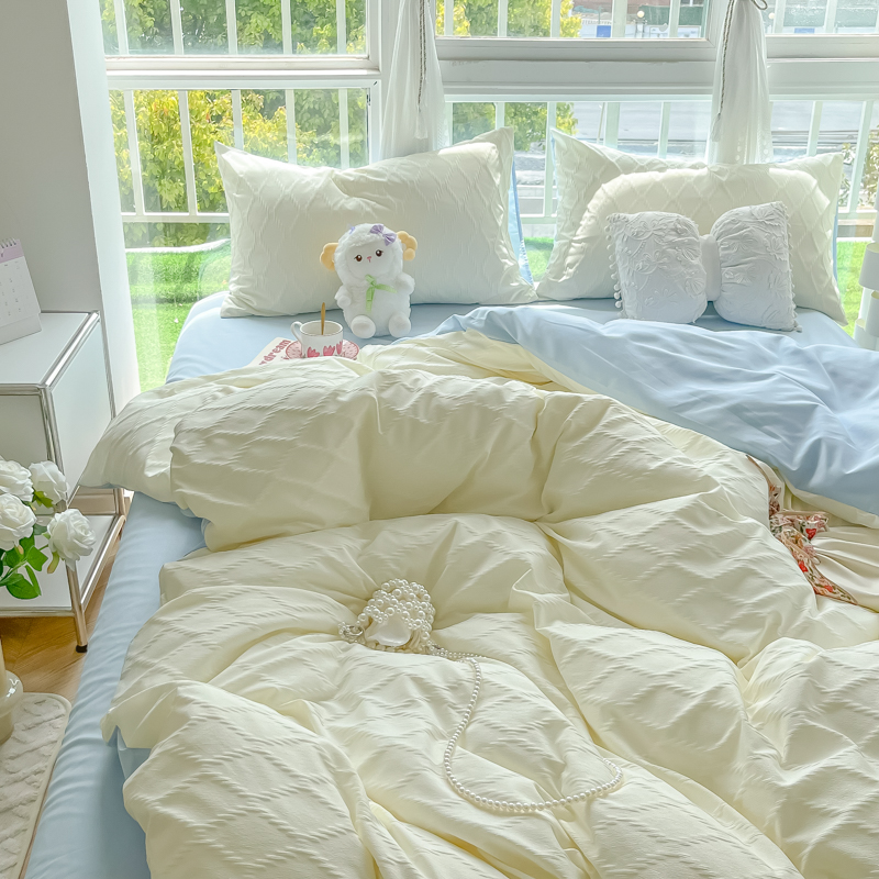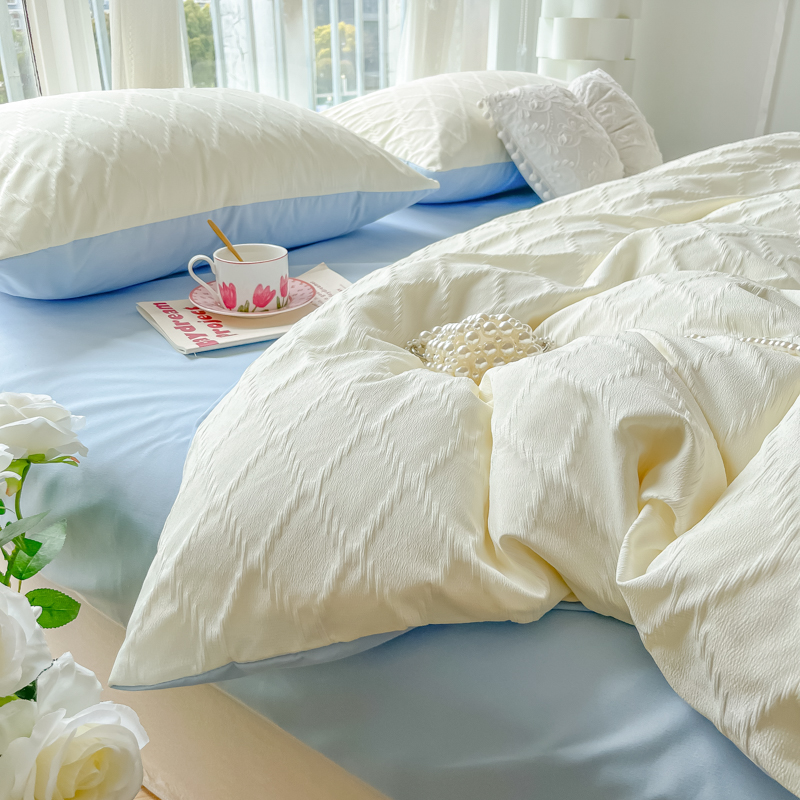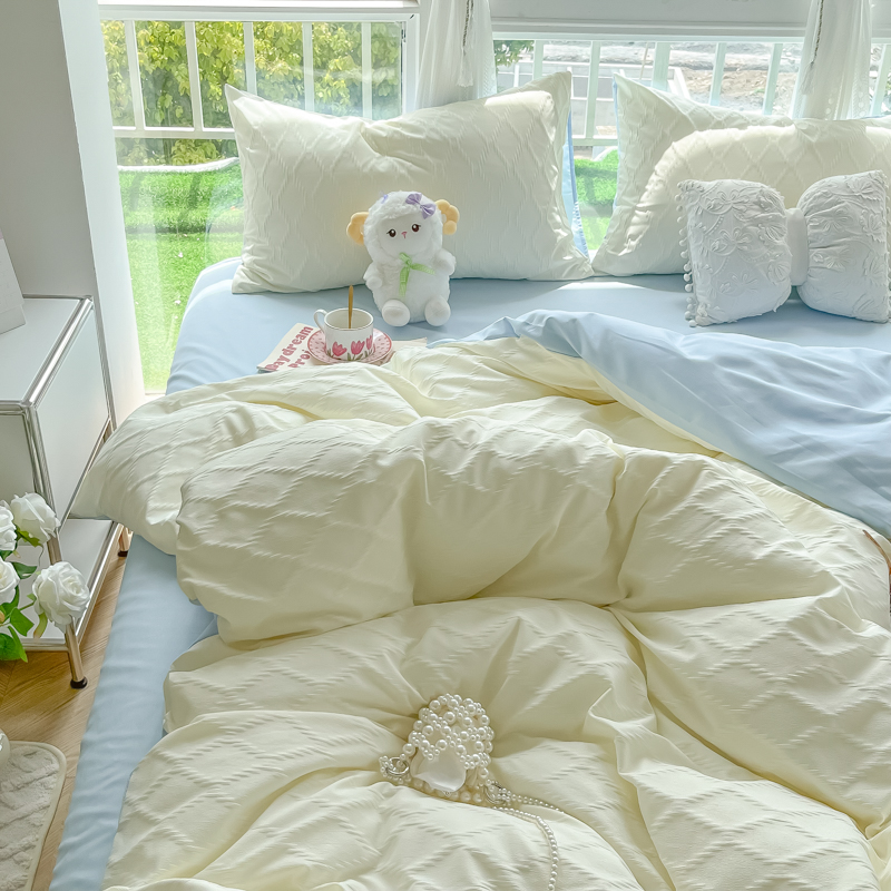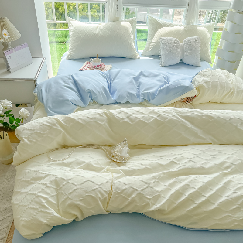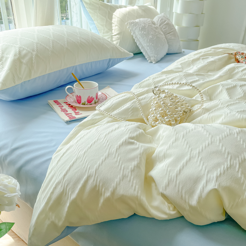 当前位置: 91家纺网 > 商品网购 > 床品套件 > 四件套 > 其它四件套 > 缦绣阁家纺 2025新款AB版菱形格简约提花四件套小清新床单款床笠款4件套生宿舍三件套 菱形格-芝士+浅兰