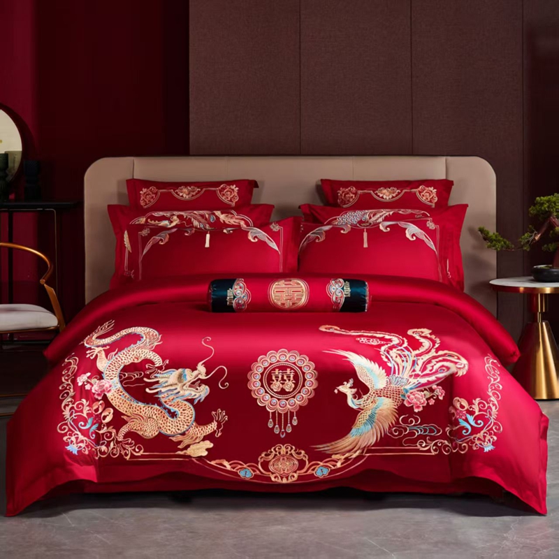 当前位置: 91家纺网 > 商品网购 > 床品套件 > 四件套 > 普通磨毛四件套 > 尹黛尔 婚庆四件套大红色刺绣可配多件套床单款床盖款 美人龙凤