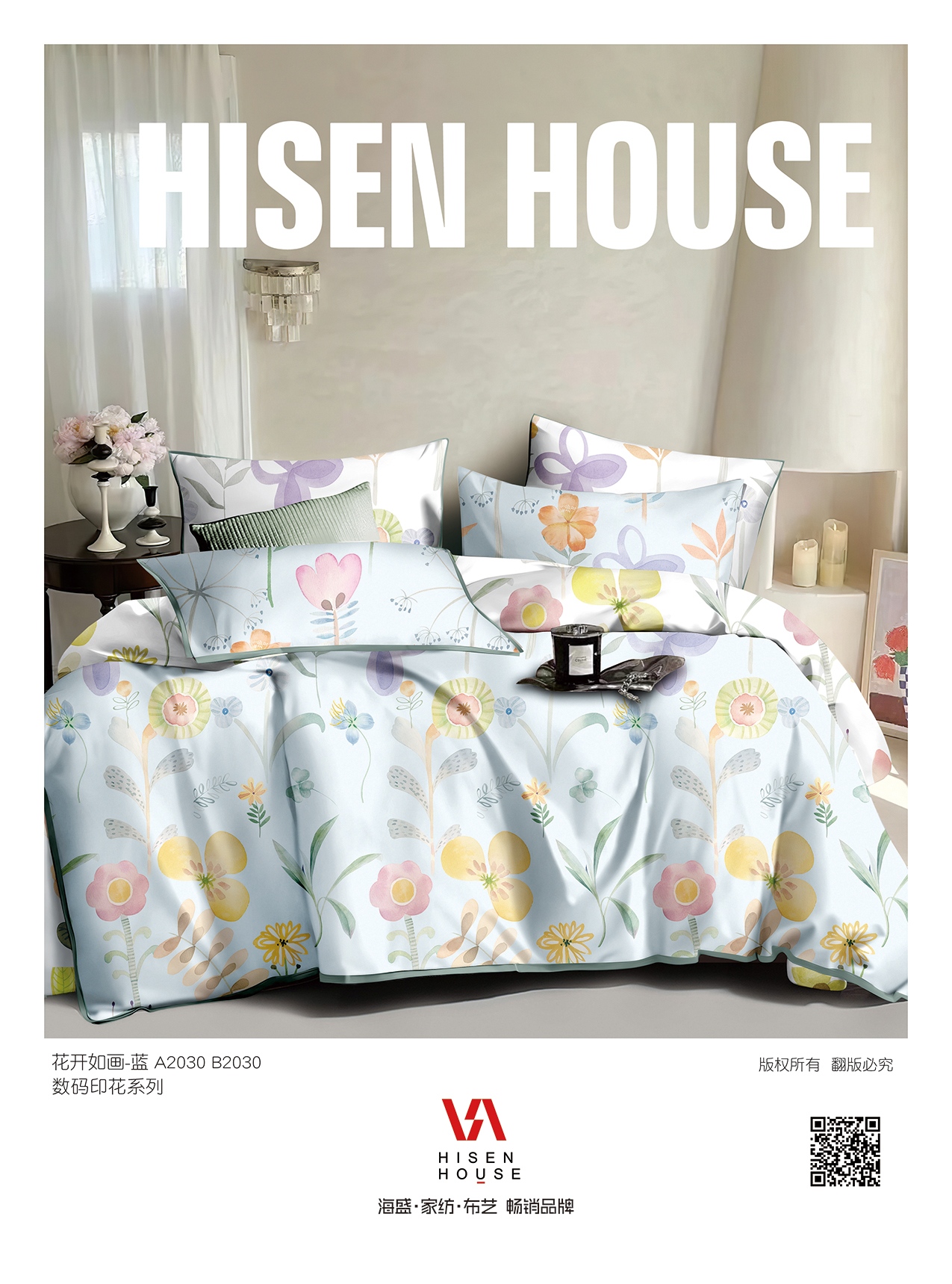 海盛 2025新款套件面料全棉13376数码印花系列 花开如画-蓝