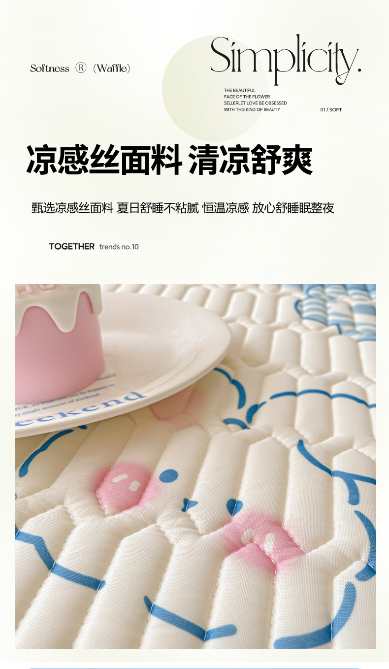• 91家纺网 家纺一手货源 找家纺 沐慕 2025新款高克重小清新乳胶凉席-风格一 花花粉兔