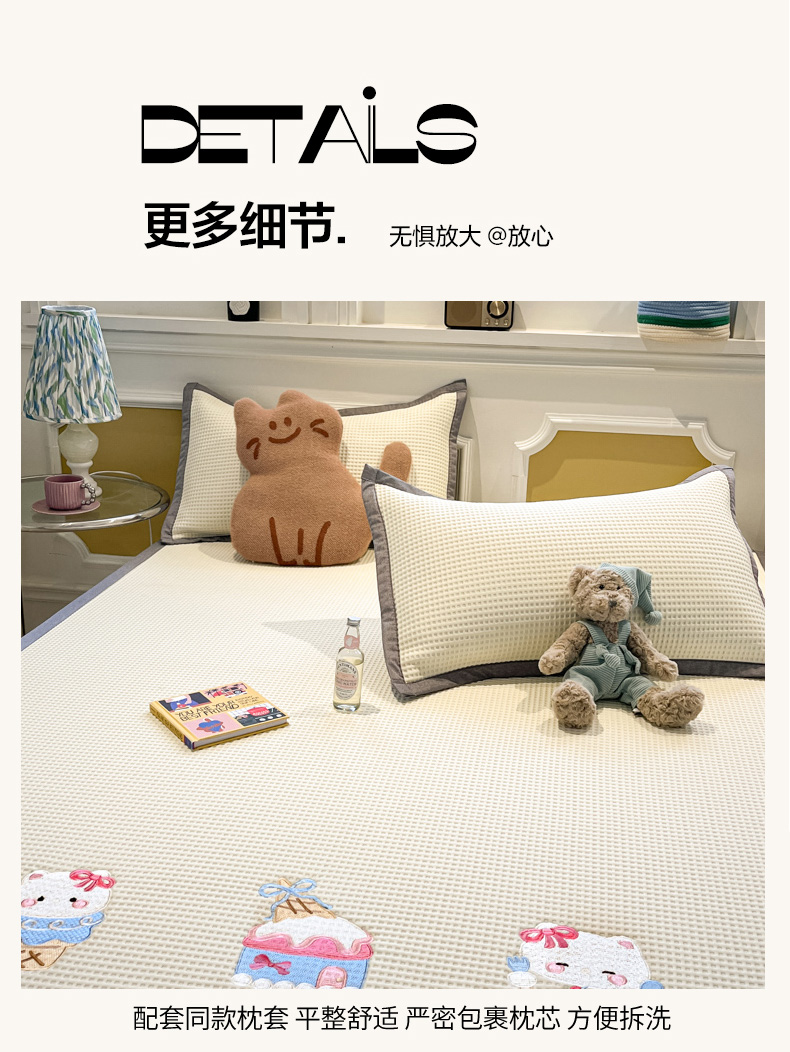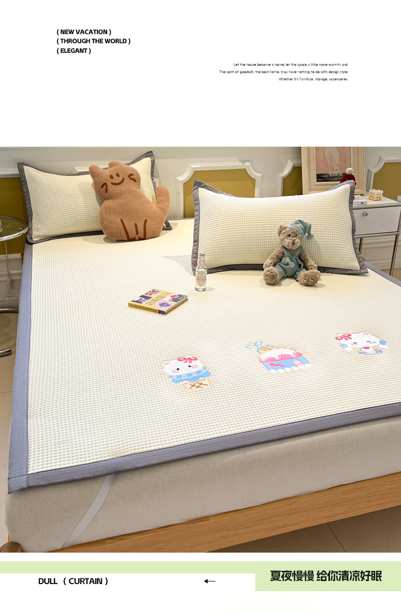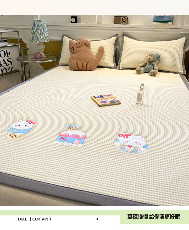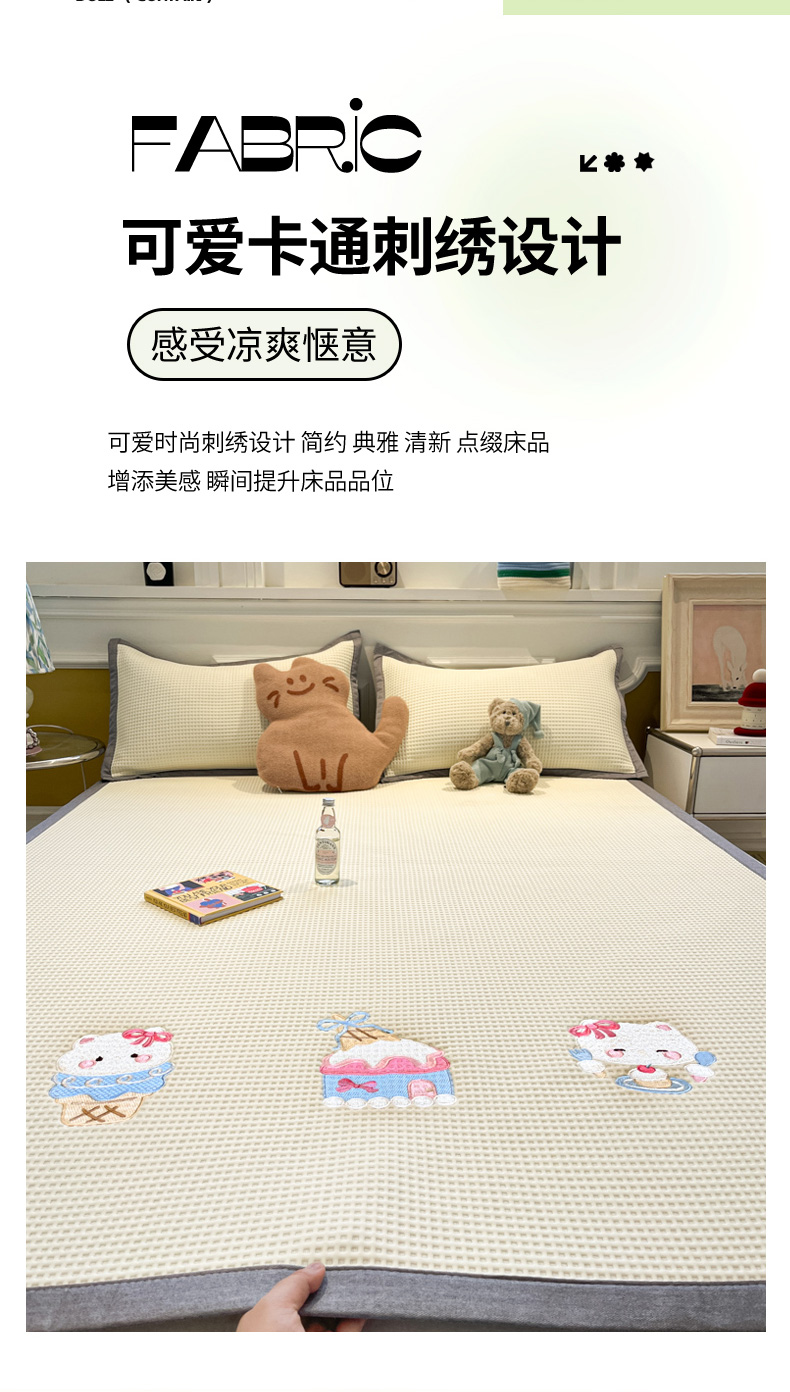 沐慕 2025新款绣花PE凉感豆豆凉席席子 冰激凌猫-米