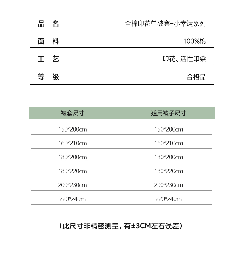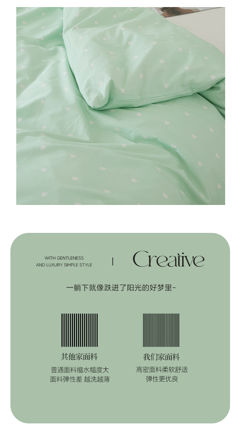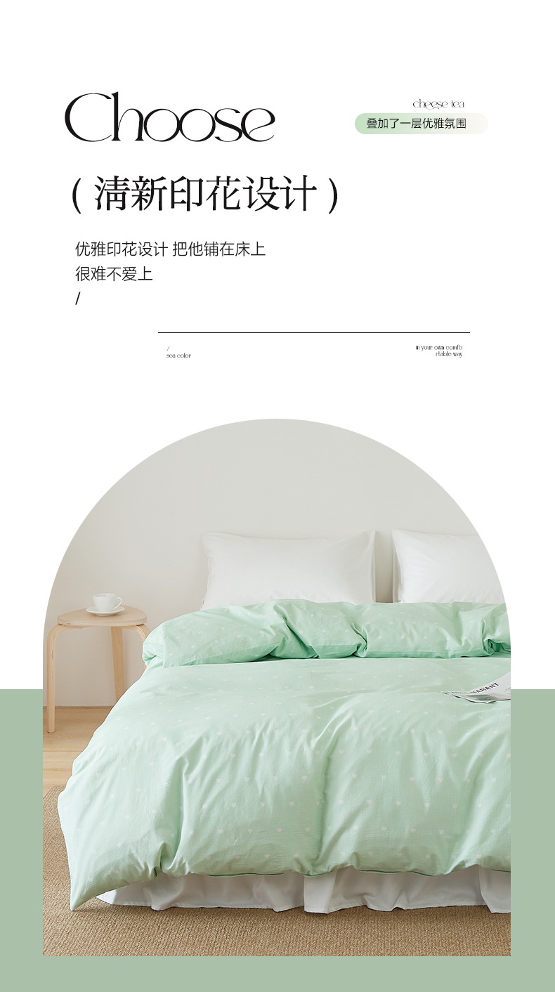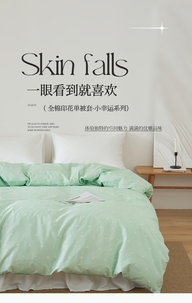 商品名称:EH家居 2025春夏新款40s全棉纯棉印花被套单件 单被套-小幸运 青色爱心