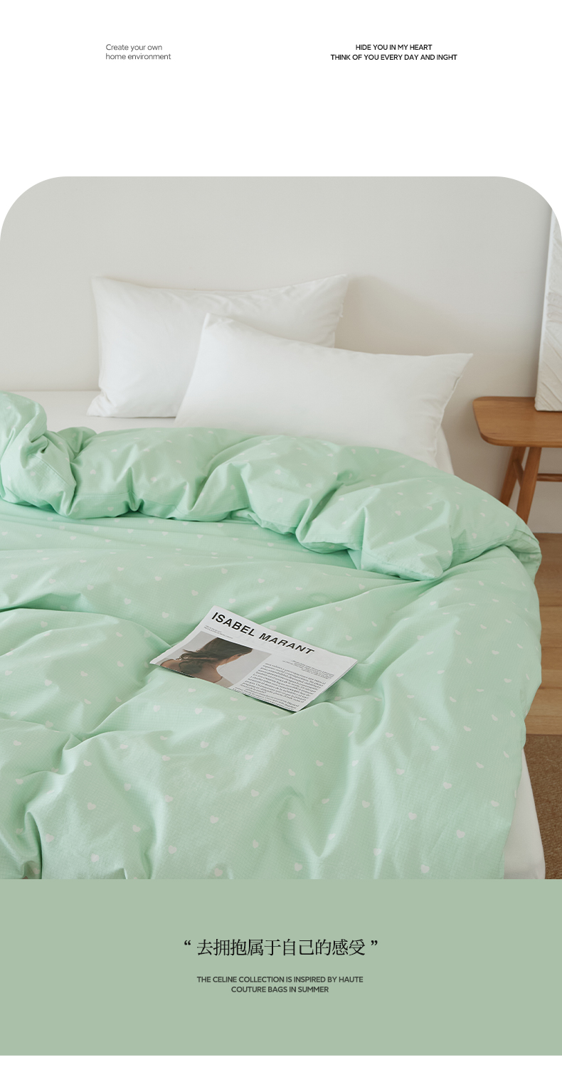 EH家居 2025春夏新款40s全棉纯棉印花被套单件 单被套-小幸运 青色爱心