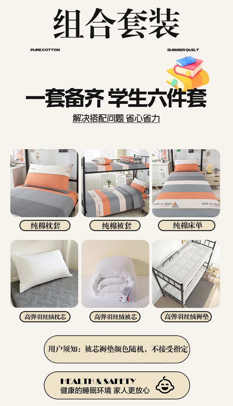 0.9床六件套【5斤棉花被+3斤垫】 | ¥135.00 |