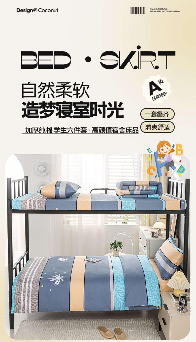 当前位置: 91家纺网 > 商品网购 > 床品套件 > 三件套 > 上学郎家居 2025新款全棉13070学生宿舍三件套单人床床单被套纯棉六件套学生床上用品 漫步云端