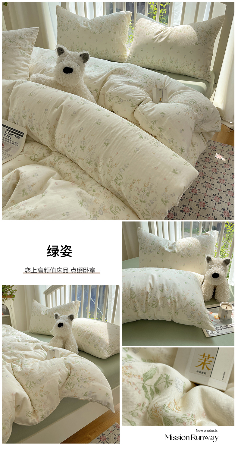 当前位置: 91家纺网 > 商品网购 > 床品套件 > 四件套 > 双层纱四件套 > XIWEN-希文家纺 2025新款A类全棉纯棉有氧双层纱四件套 绿姿
