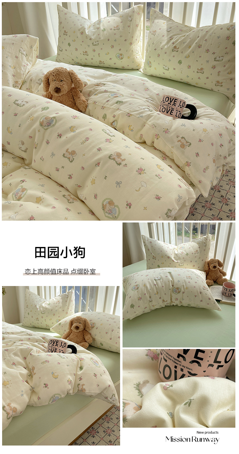 当前位置: 91家纺网 > 商品网购 > 床品套件 > 四件套 > 双层纱四件套 > XIWEN-希文家纺 2025新款A类全棉纯棉有氧双层纱四件套 田园小狗