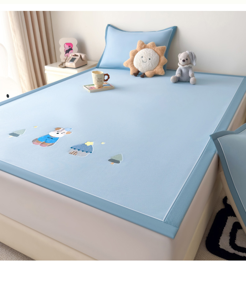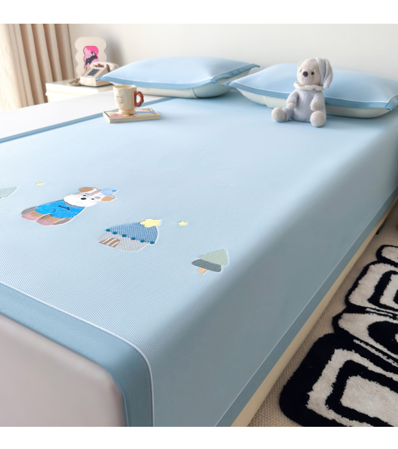 九花鹿2024新款A类大版碳光冰丝凉席床笠款三件套四件套,大版床笠款-熊宝贝