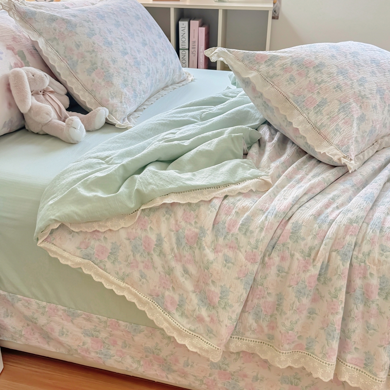商品名称:奥虎家纺 2025新款纯棉花边小竹棉夏被四件套 芳华
