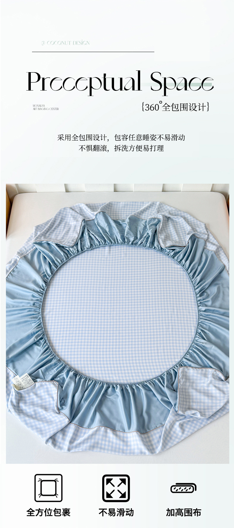 笠裙家纺 2025新款进口凉感莱赛尔天丝床笠套三件套 美格蓝
