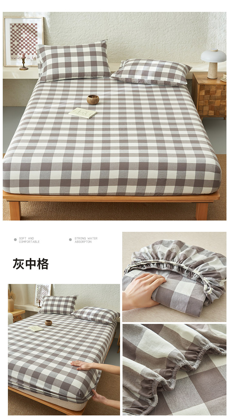 早晨家纺 2025新款色织纯棉水洗棉床笠 灰中格