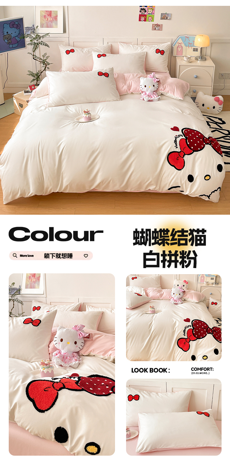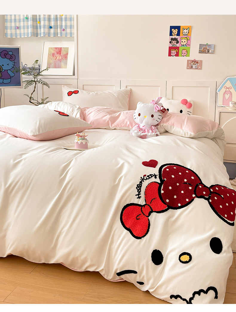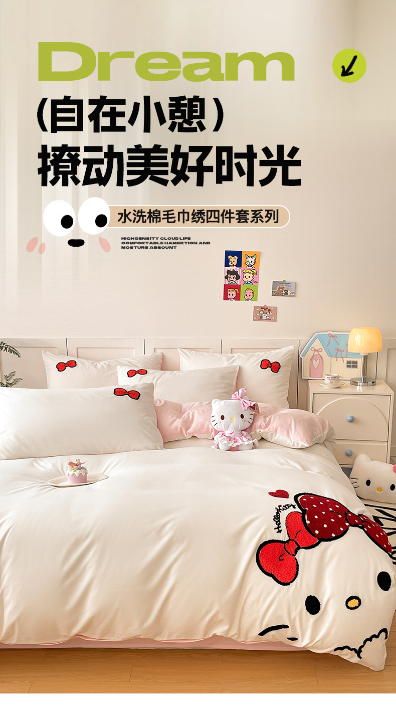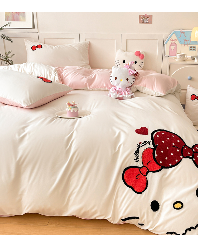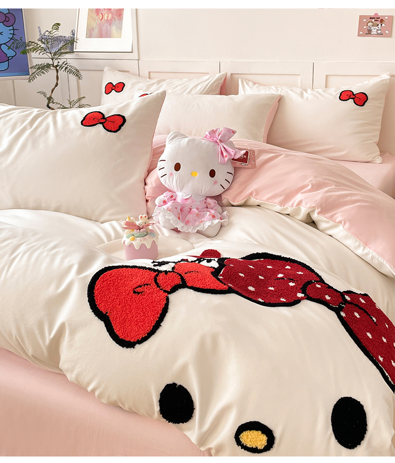 当前位置: 91家纺网 > 商品网购 > 床品套件 > 四件套 > 其它四件套 > 首尔家纺 2025新款云朵棉卡通毛巾绣四件套 蝴蝶结猫-白拼粉