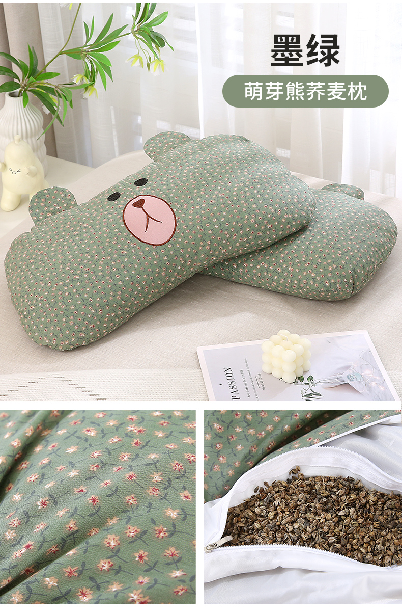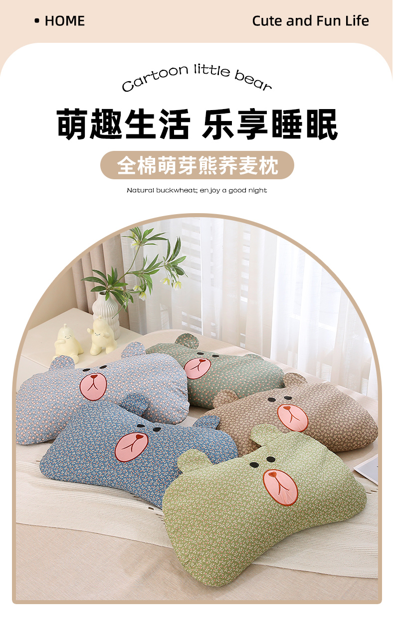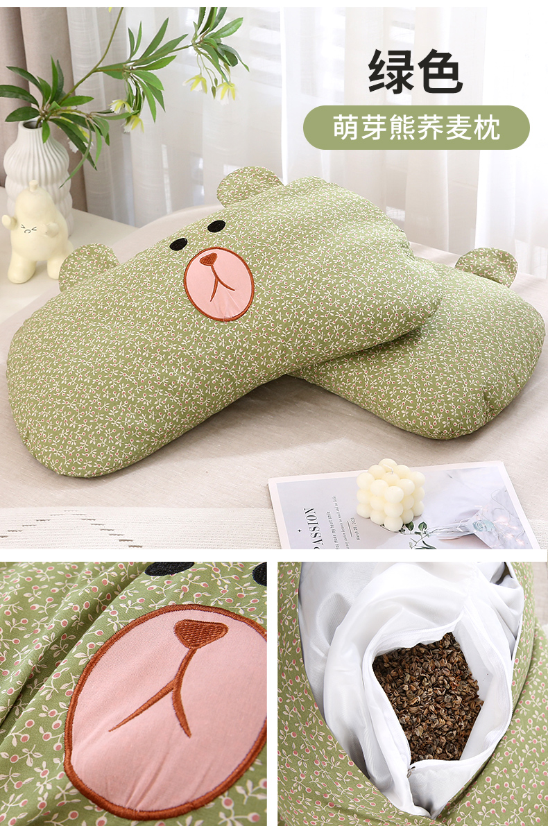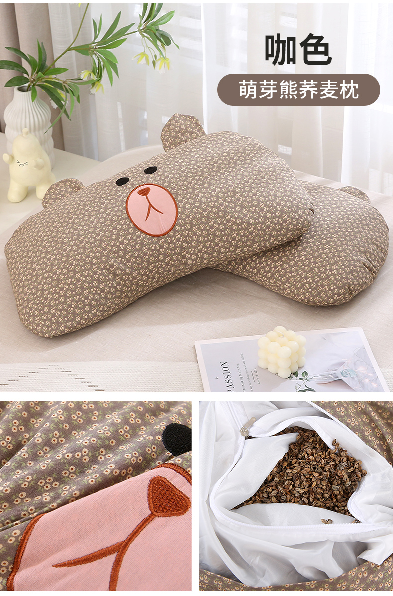商品名称:(总)梦叶草 2025新款全棉刺绣枕芯萌芽熊荞麦枕头