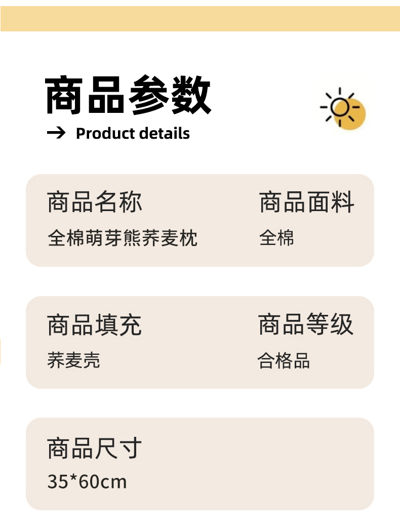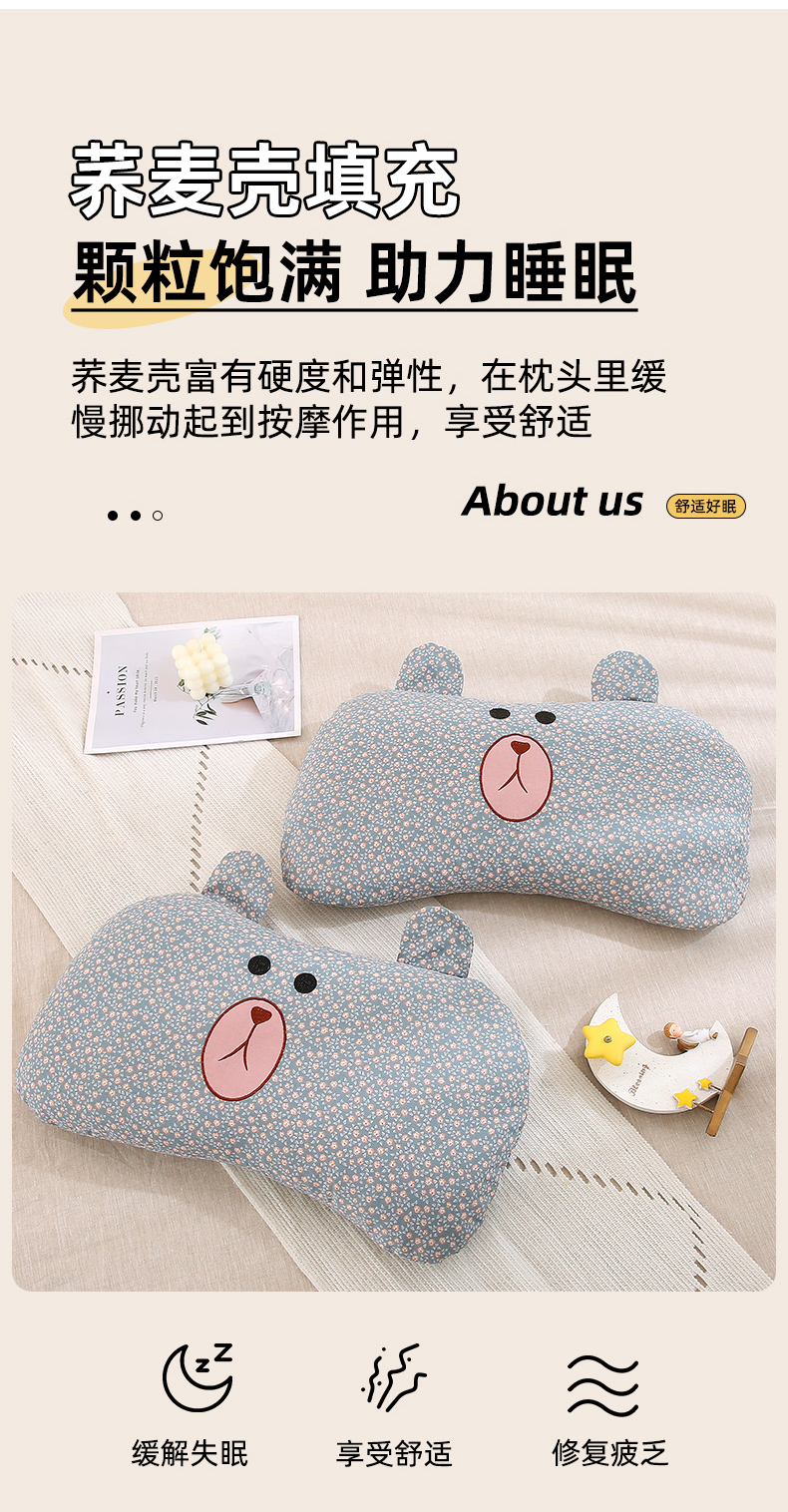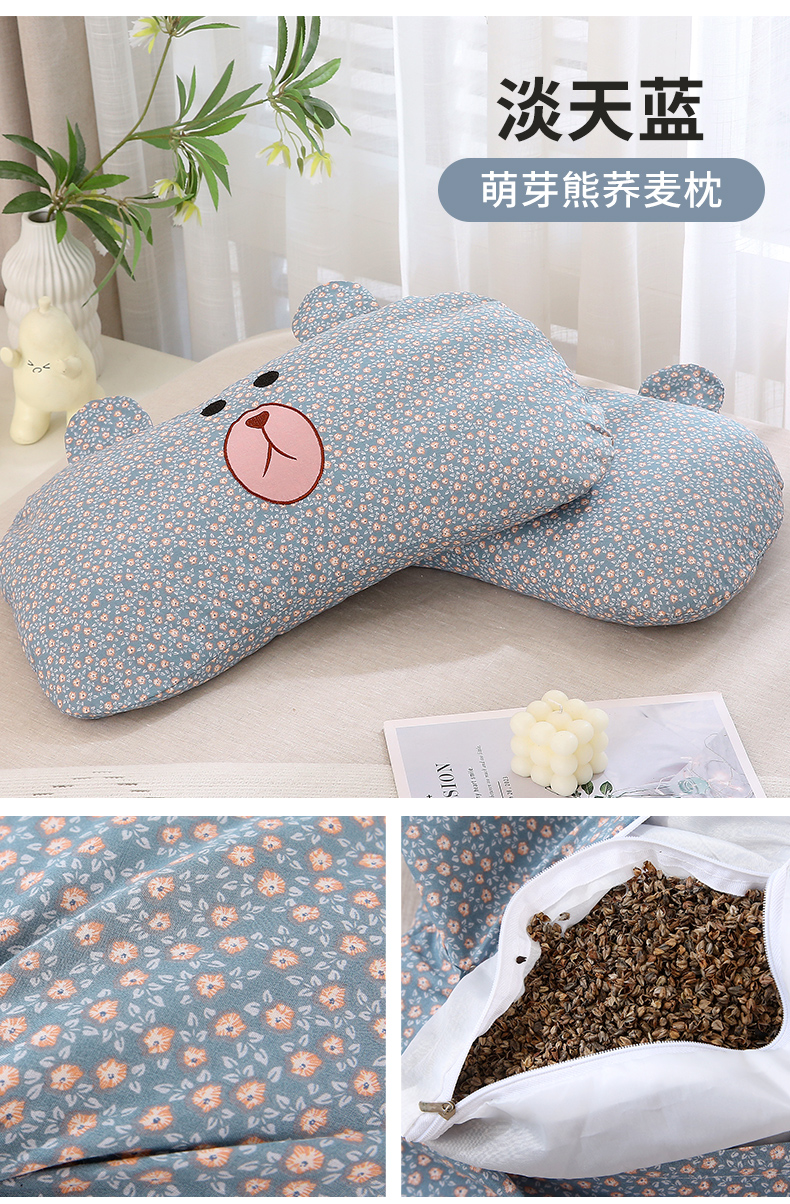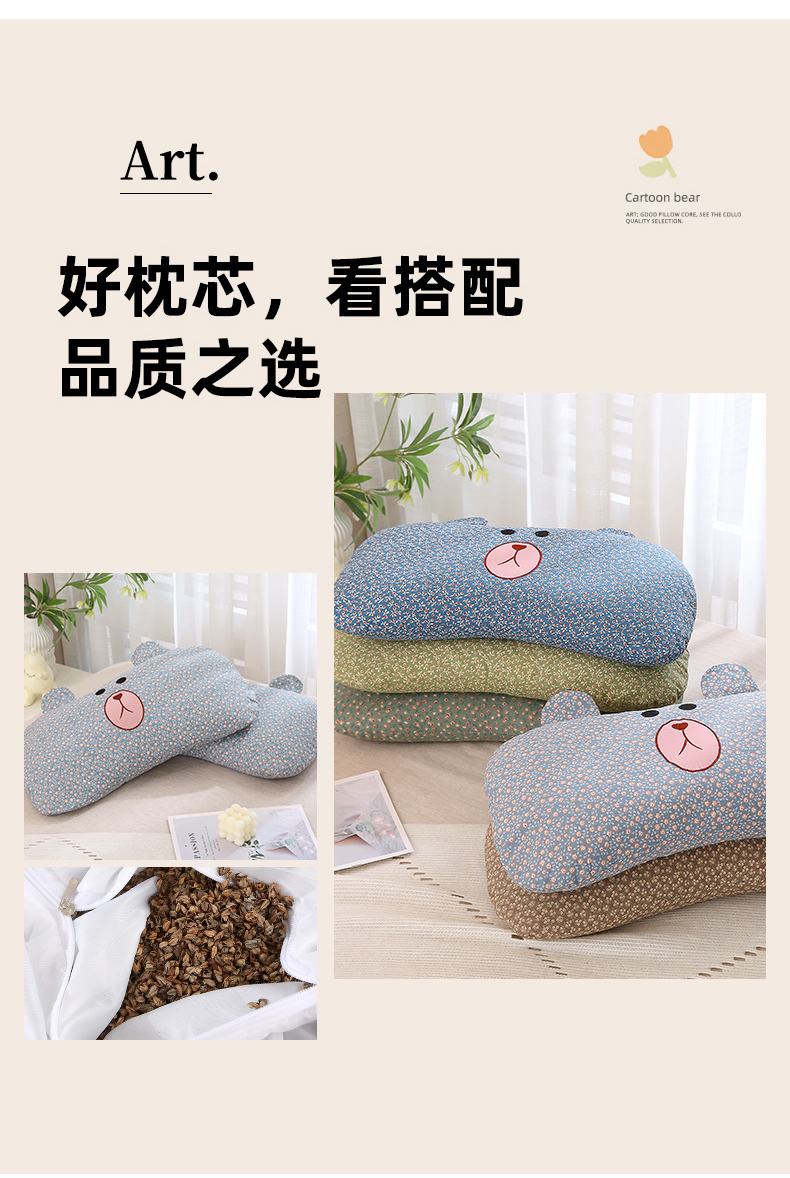 商品名称:(总)梦叶草 2025新款全棉刺绣枕芯萌芽熊荞麦枕头