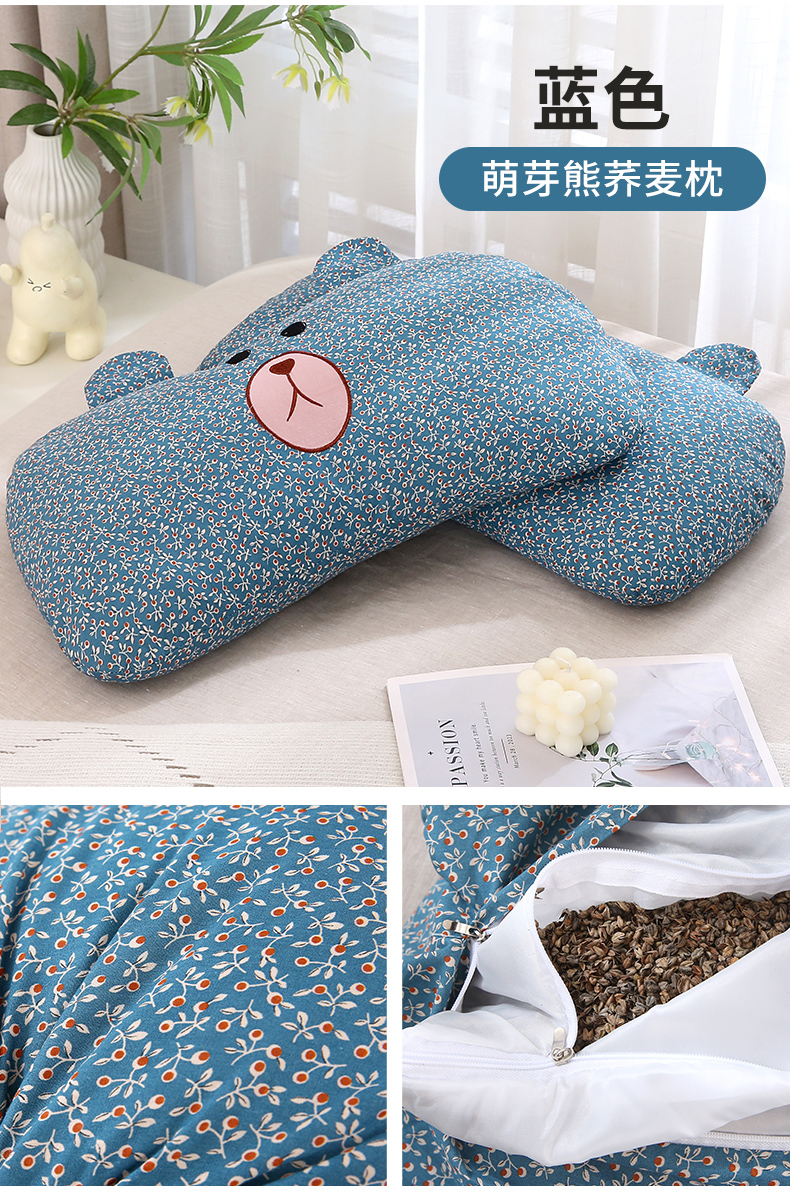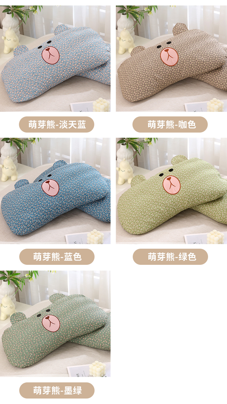 (总)梦叶草 2025新款全棉刺绣枕芯萌芽熊荞麦枕头,萌芽熊-淡天蓝35*60cm,萌芽熊-咖色35*60cm,萌芽熊-蓝色35*60cm,萌芽熊-绿色35*60cm,萌芽熊-墨绿35*60cm