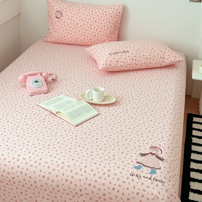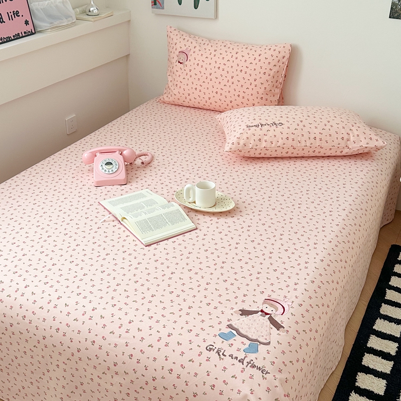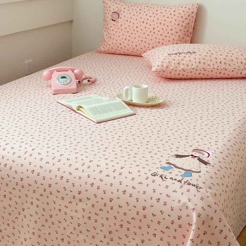 珺柔家纺 2025新款210克老粗布床笠床单 玫瑰女孩