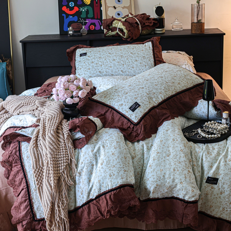 紫碧螺家纺 2025新款A类全棉纯棉仙女双层纱大韩边四件套 花样倾城