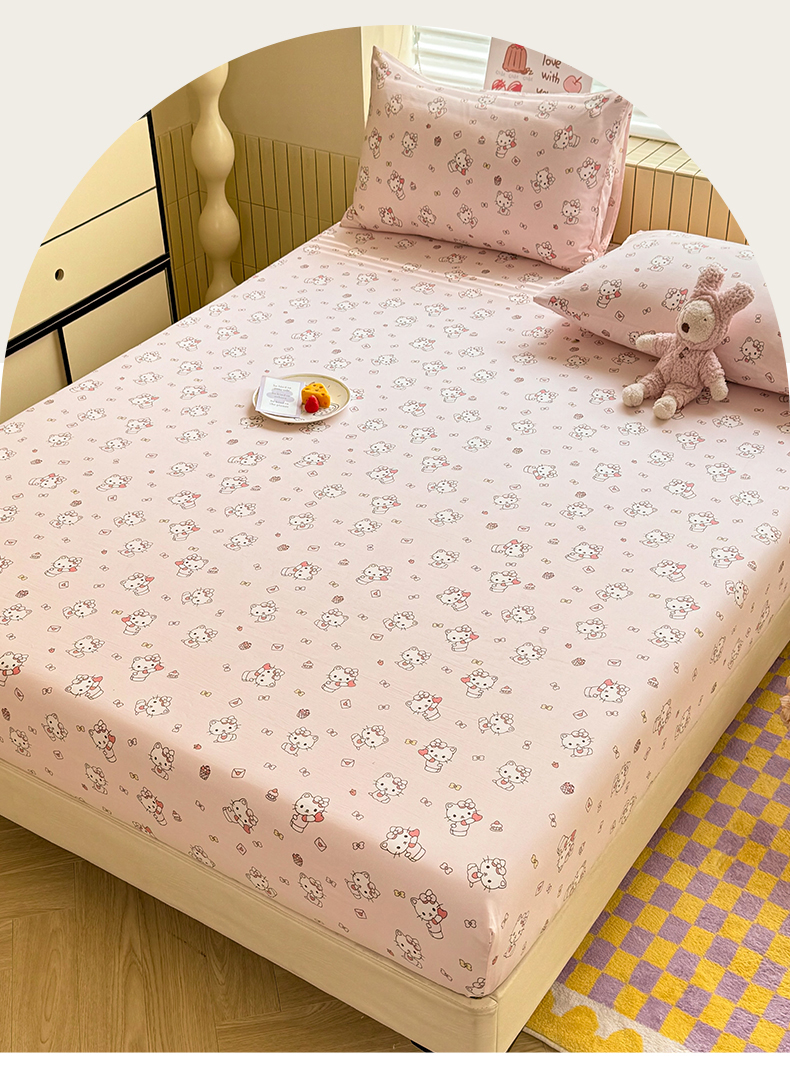 • 91家纺网 家纺一手货源 找家纺 多品家纺 2025春夏新款超柔云感水洗棉单床笠 床笠单件-大床图 猫咪团