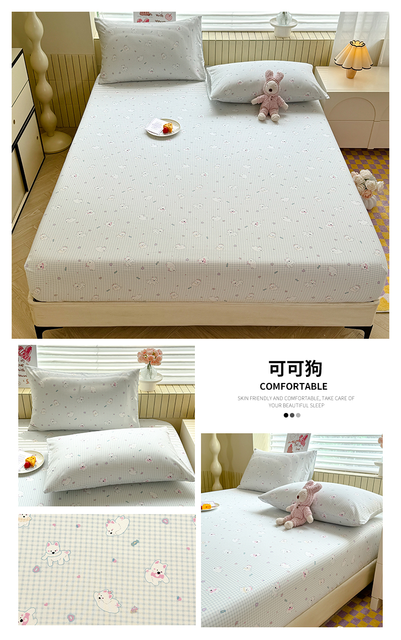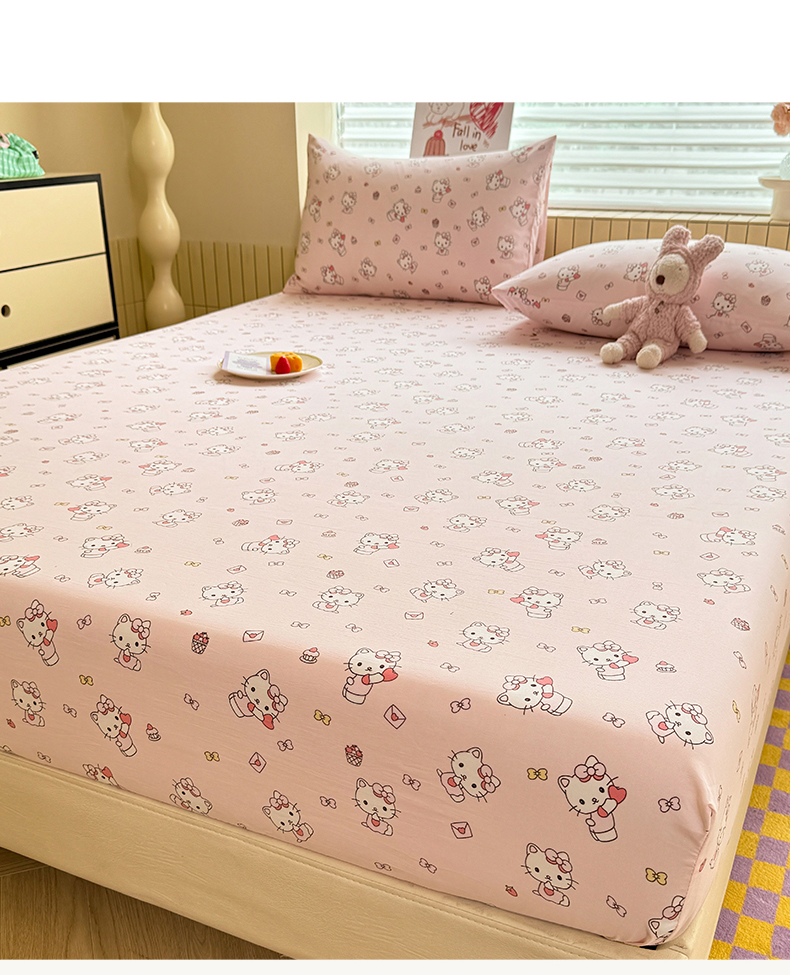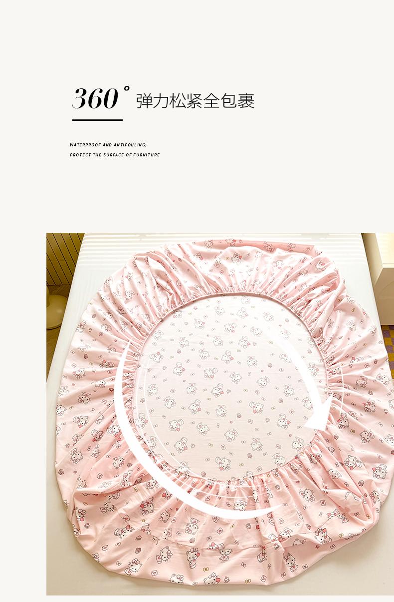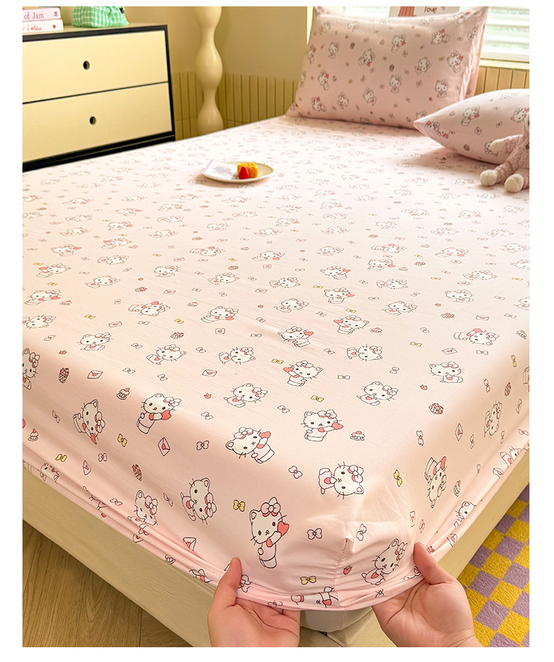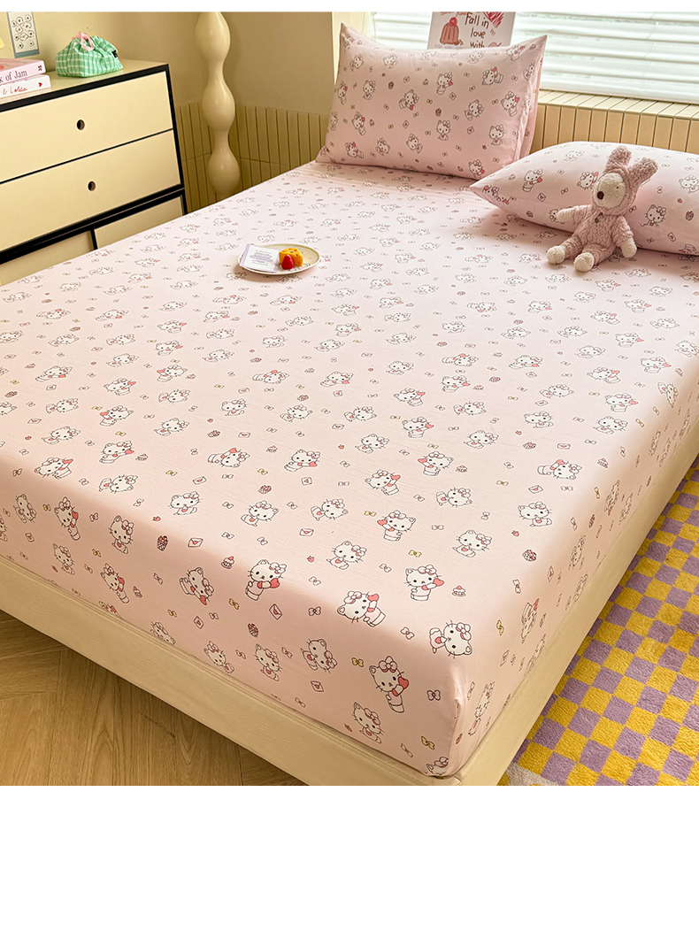 多品家纺 2025春夏新款超柔云感水洗棉单床笠 床笠单件-大床图 猫咪团