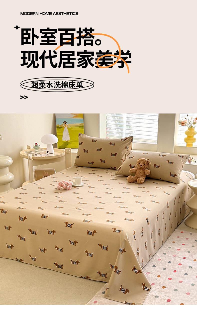 当前位置: 91家纺网 > 商品网购 > 床上用品 > 床单 > 多品家纺 2025春夏新款超柔水洗棉单床单 床单单件 复古狗