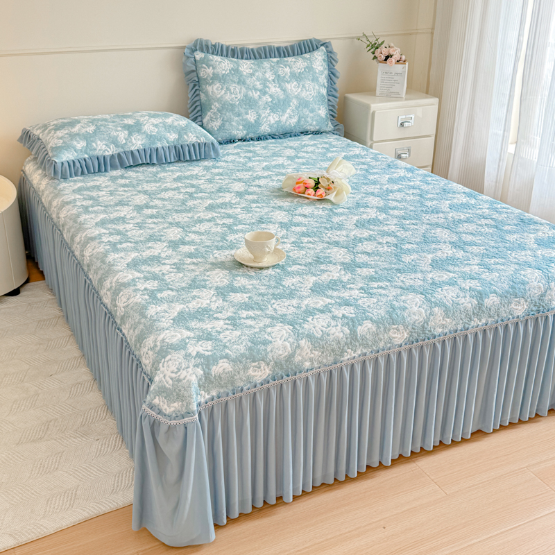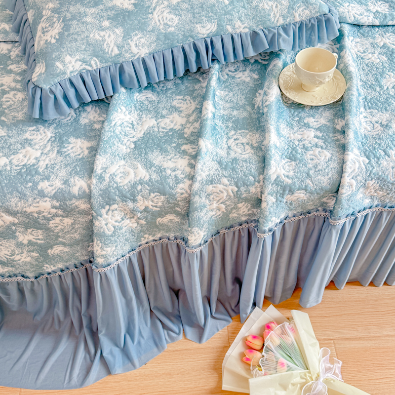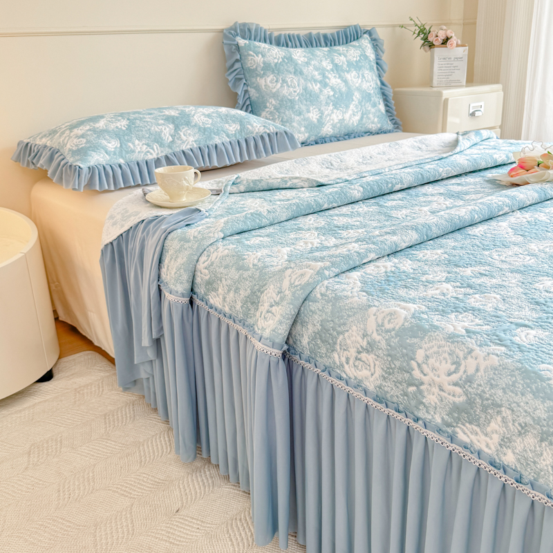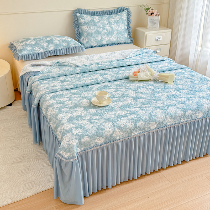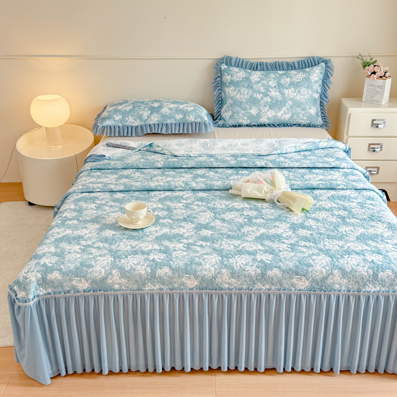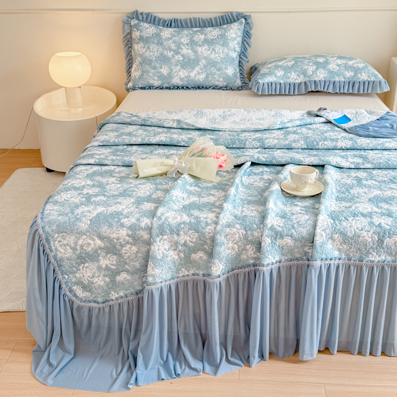商品名称:慧菲 2025新款床盖款凉席三件套-玫瑰 玫瑰-蓝