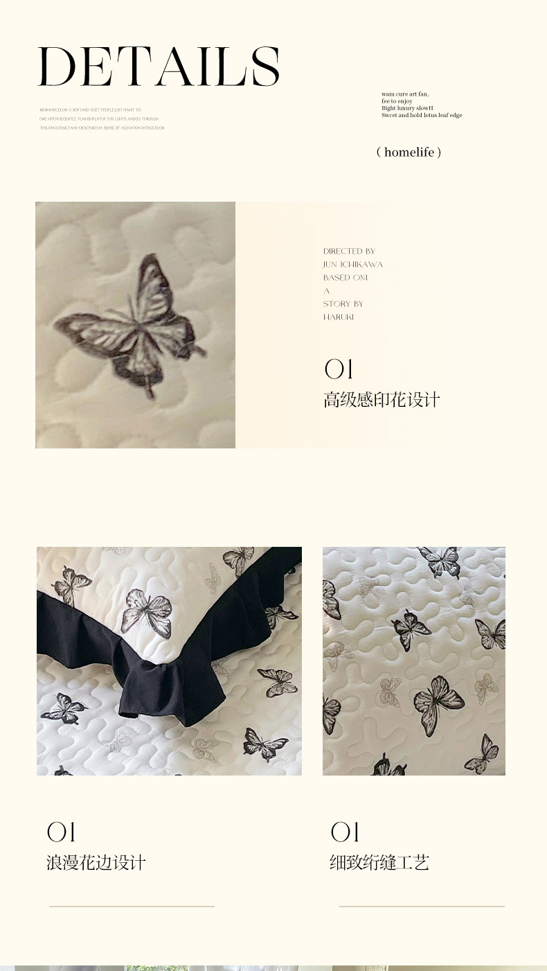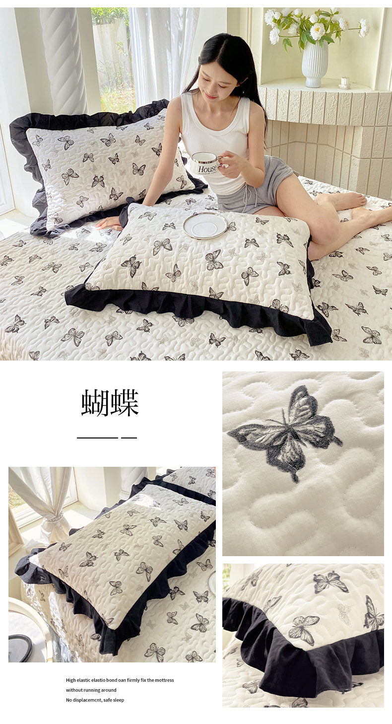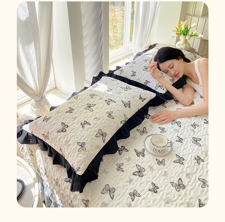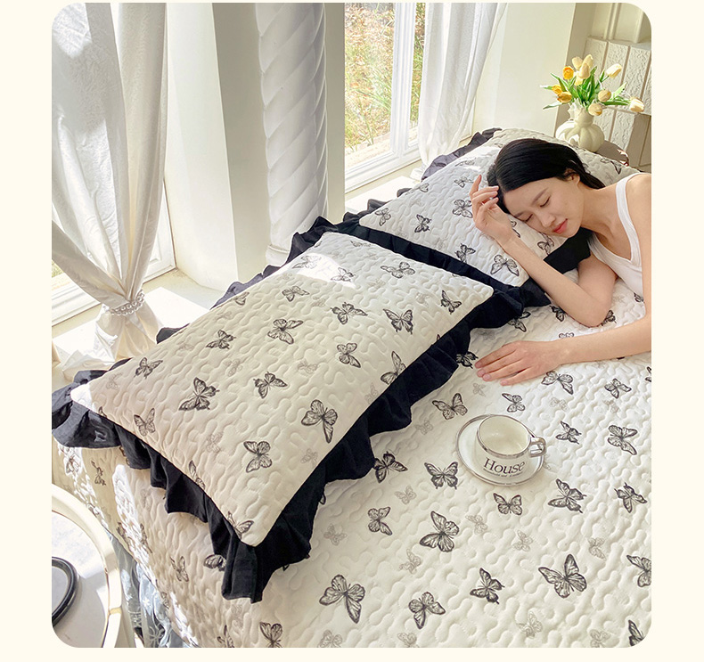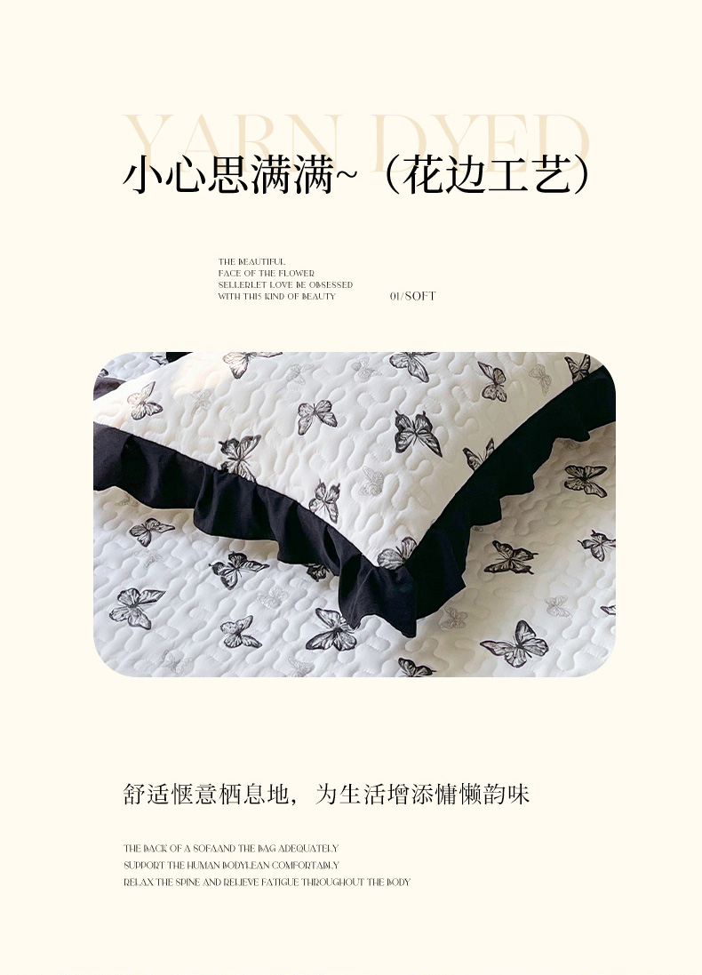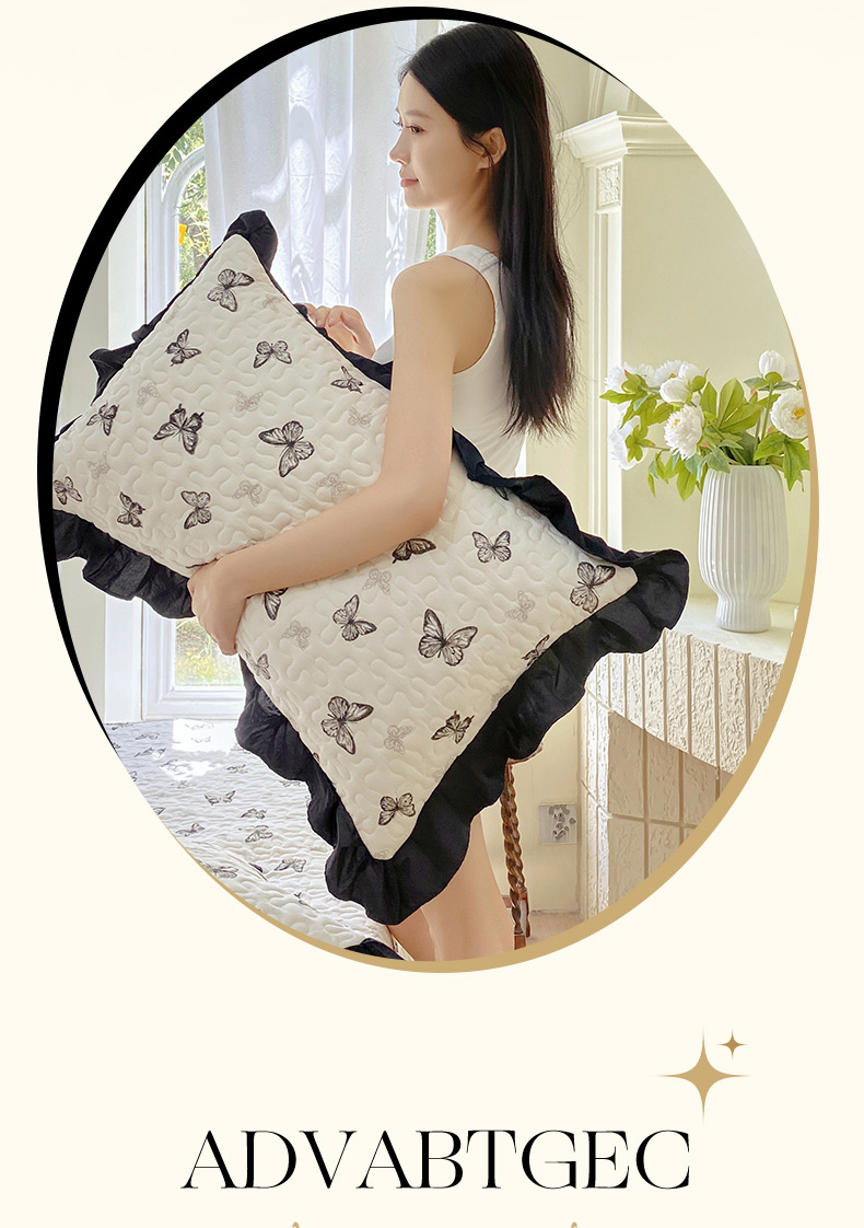 商品名称:雨彤家纺2025新款赫本风水洗棉夹棉花边枕套 蝴蝶
