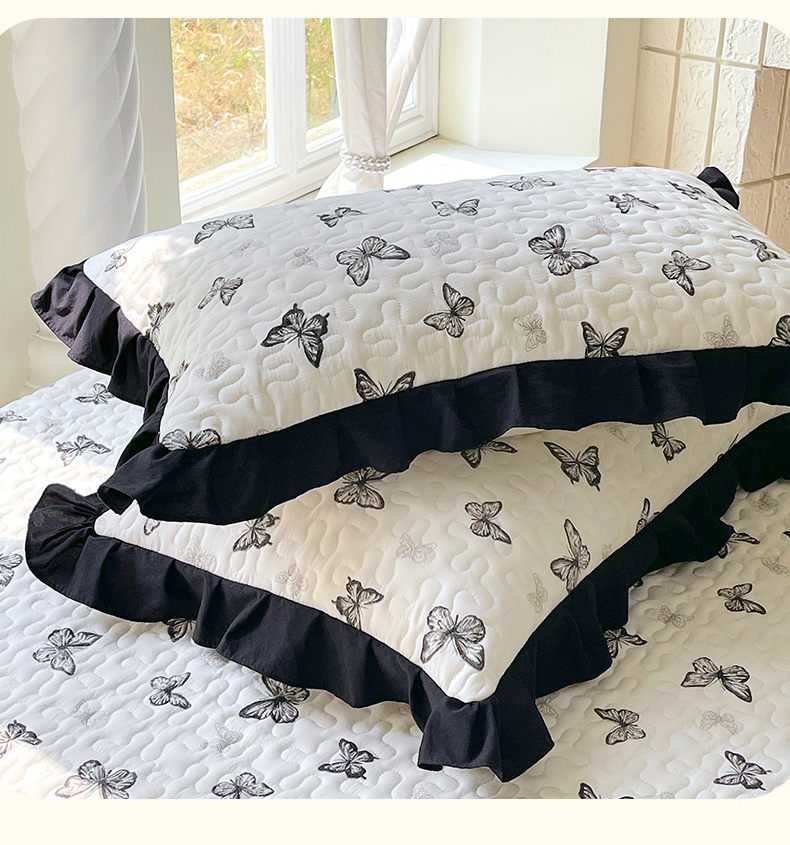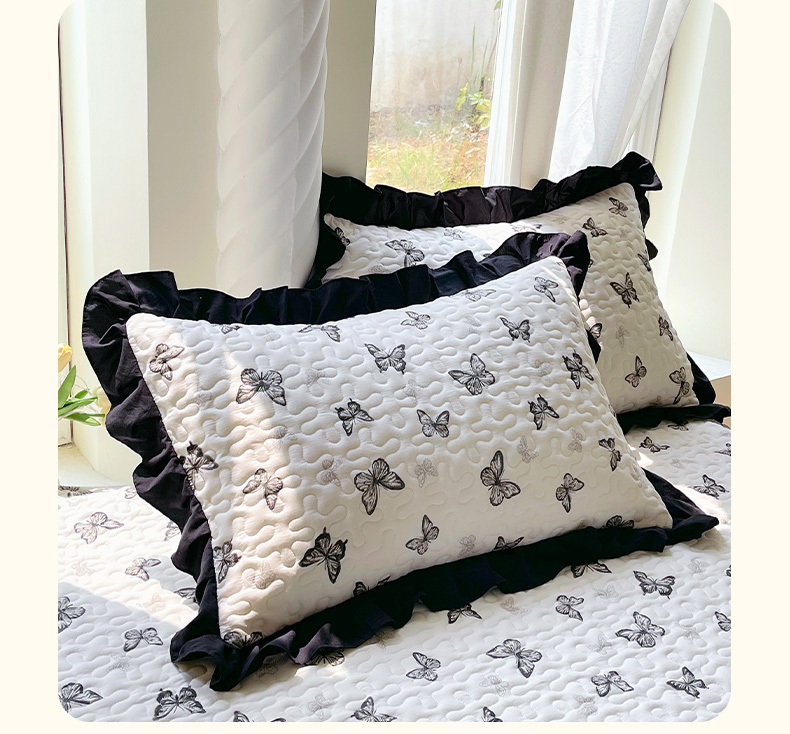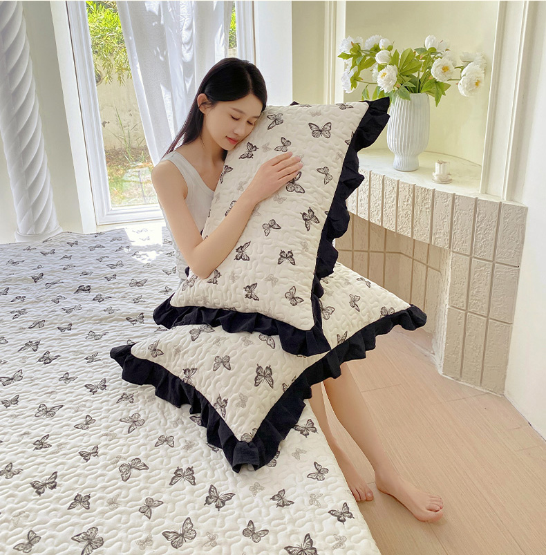 雨彤家纺2025新款赫本风水洗棉夹棉花边枕套 蝴蝶