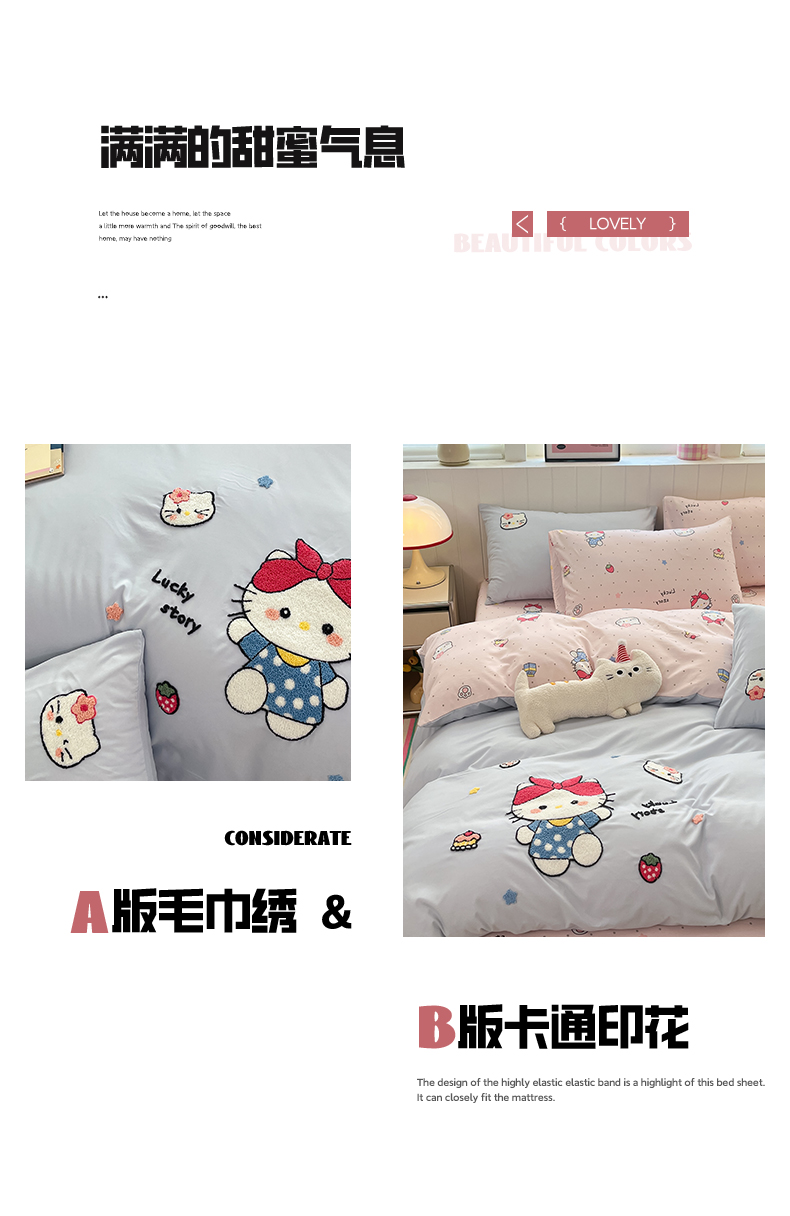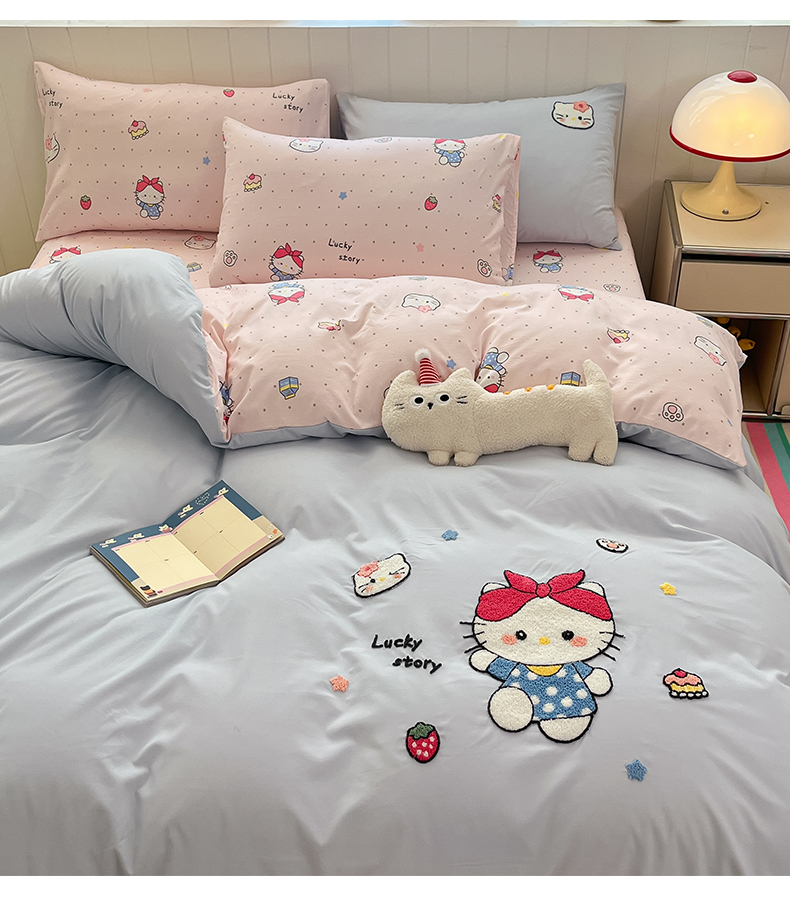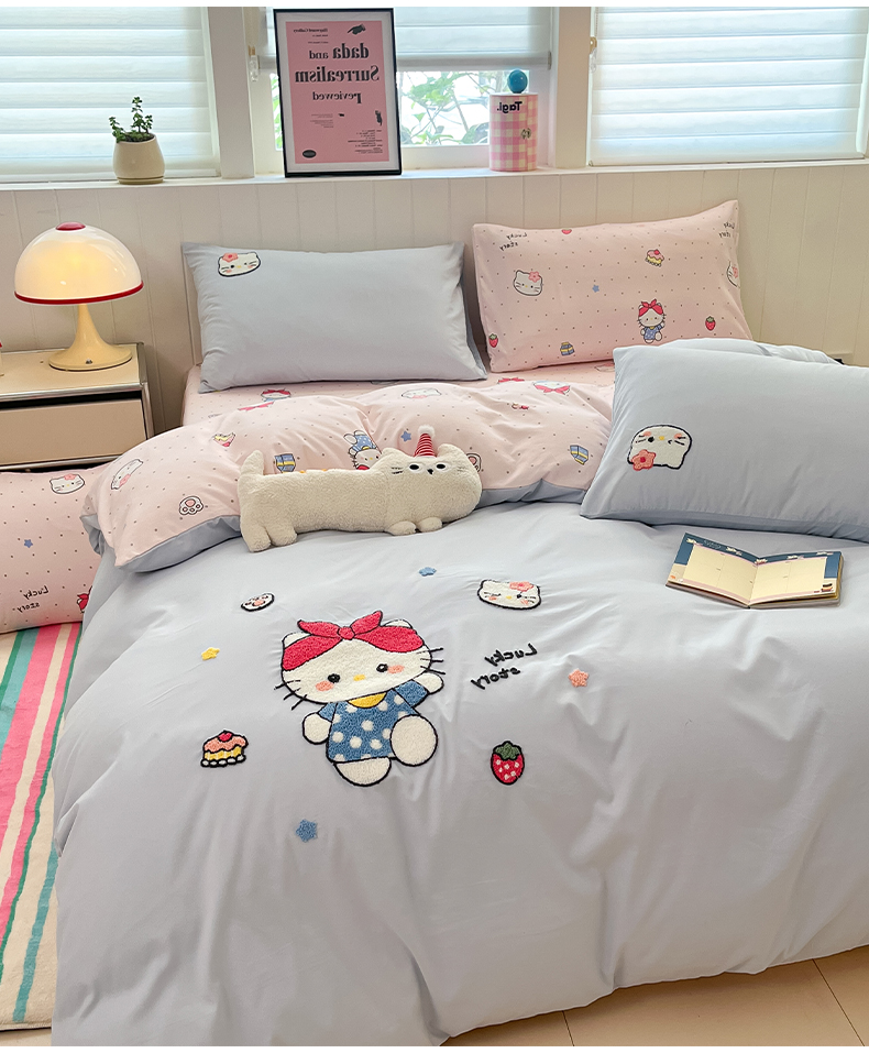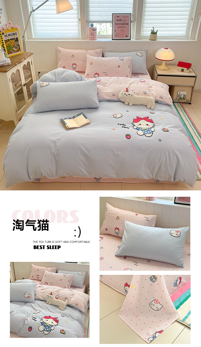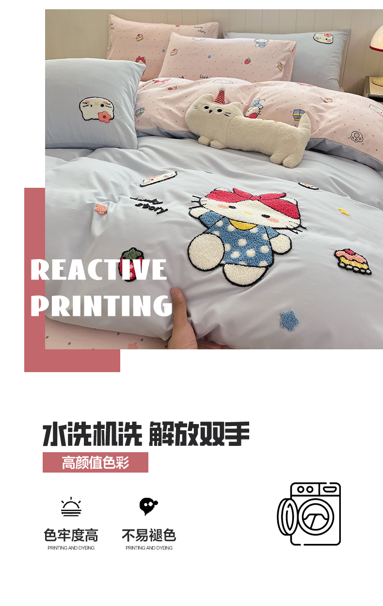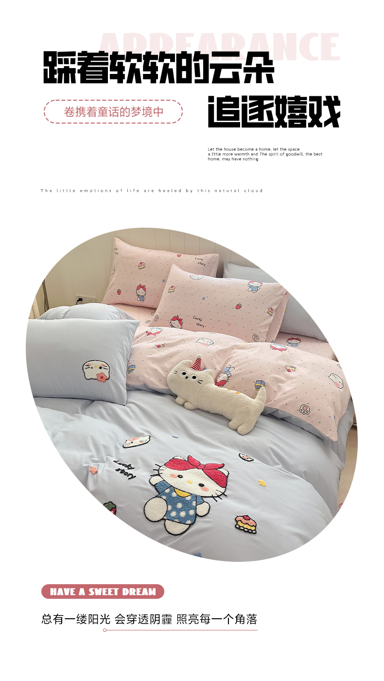 商品名称:如一 2025新款A类卡通印加毛巾绣水洗云朵棉四件套(提供买家秀) 淘气猫
