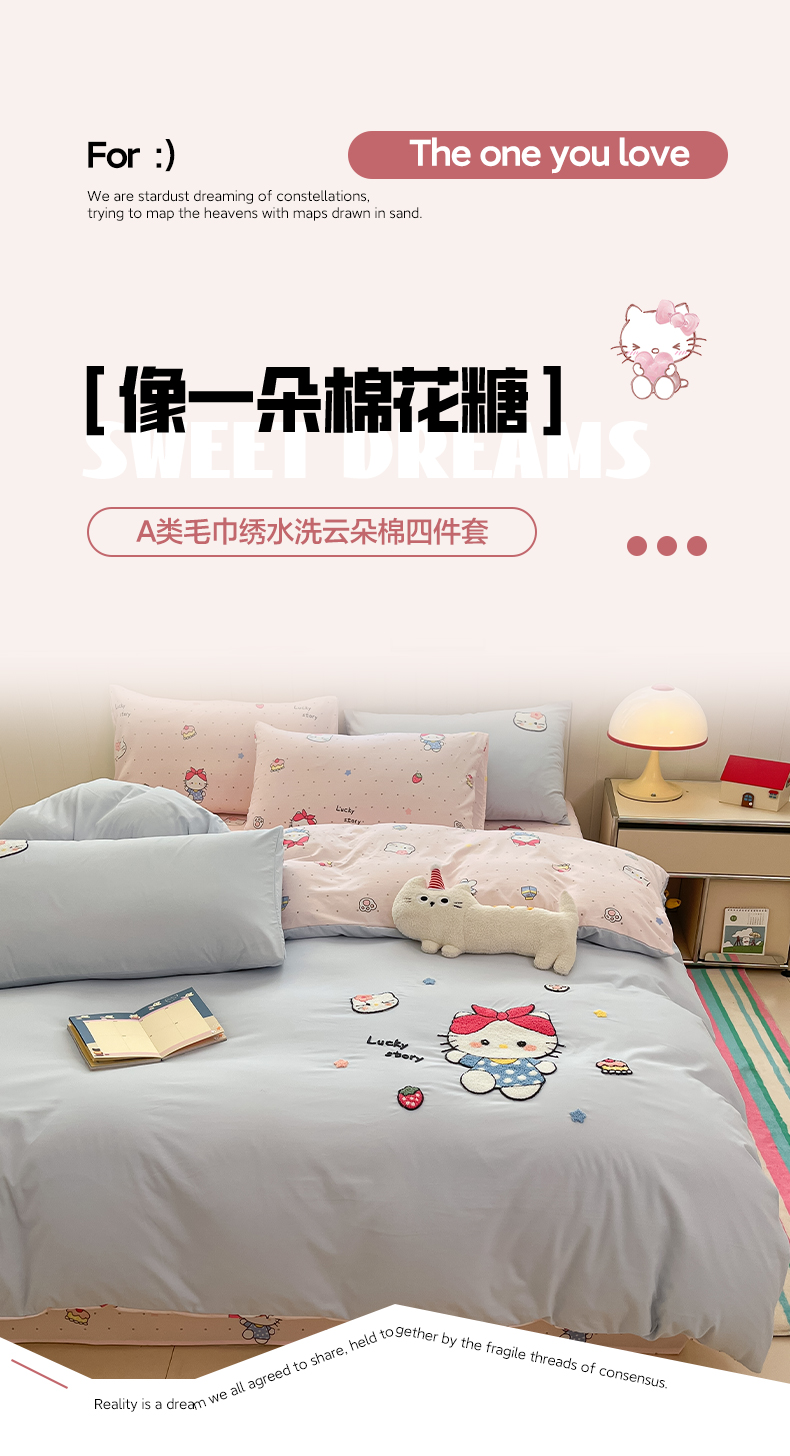 (总)如一 2025新款卡通毛巾绣系列牛奶绒四件套,卡皮柿子,爱心天使,豹纹黑皮,草莓灰猫,蛋糕小狗,粉格小猫,海绵宝宝,快乐企鹅,拉布饼干,蓝格黑猫,领结粉兔,苹果拉布,竖条西高,晚安小象,星星宝贝,星星木马,星星派对,星星苹果,星月猫咪,樱桃黑猫