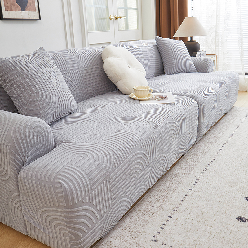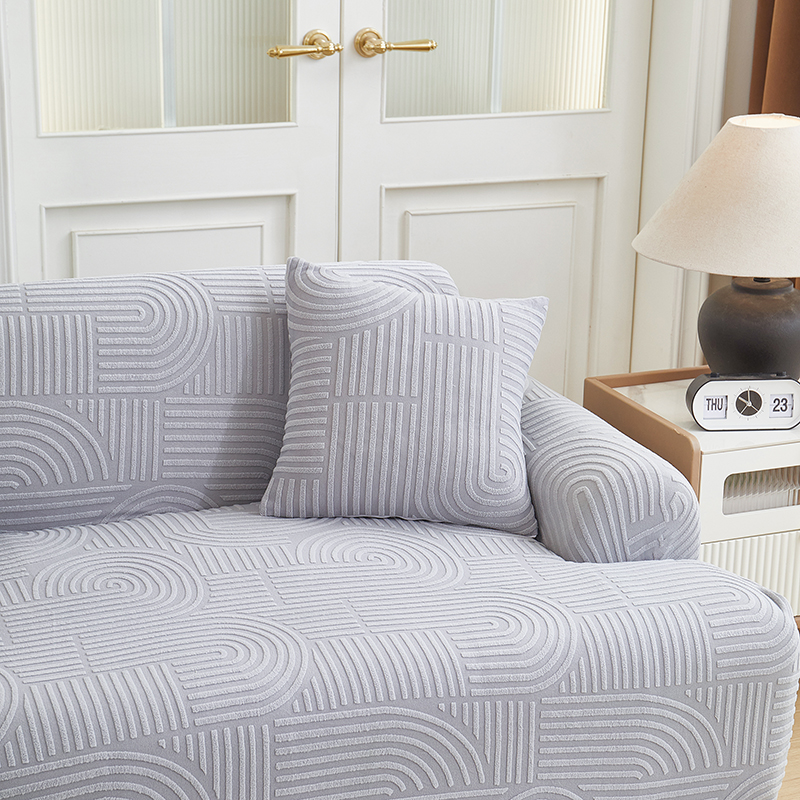 商品名称:丝绮鹿 2025新款圆满沙发套(直排松紧款) 月光灰