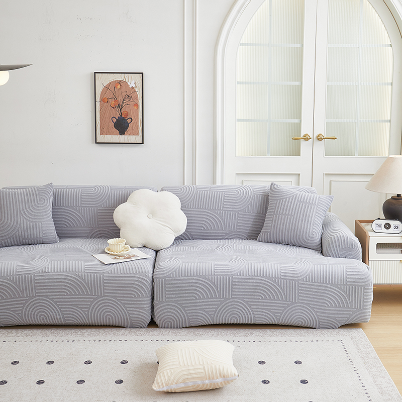 丝绮鹿 2025新款圆满沙发套(直排松紧款) 月光灰