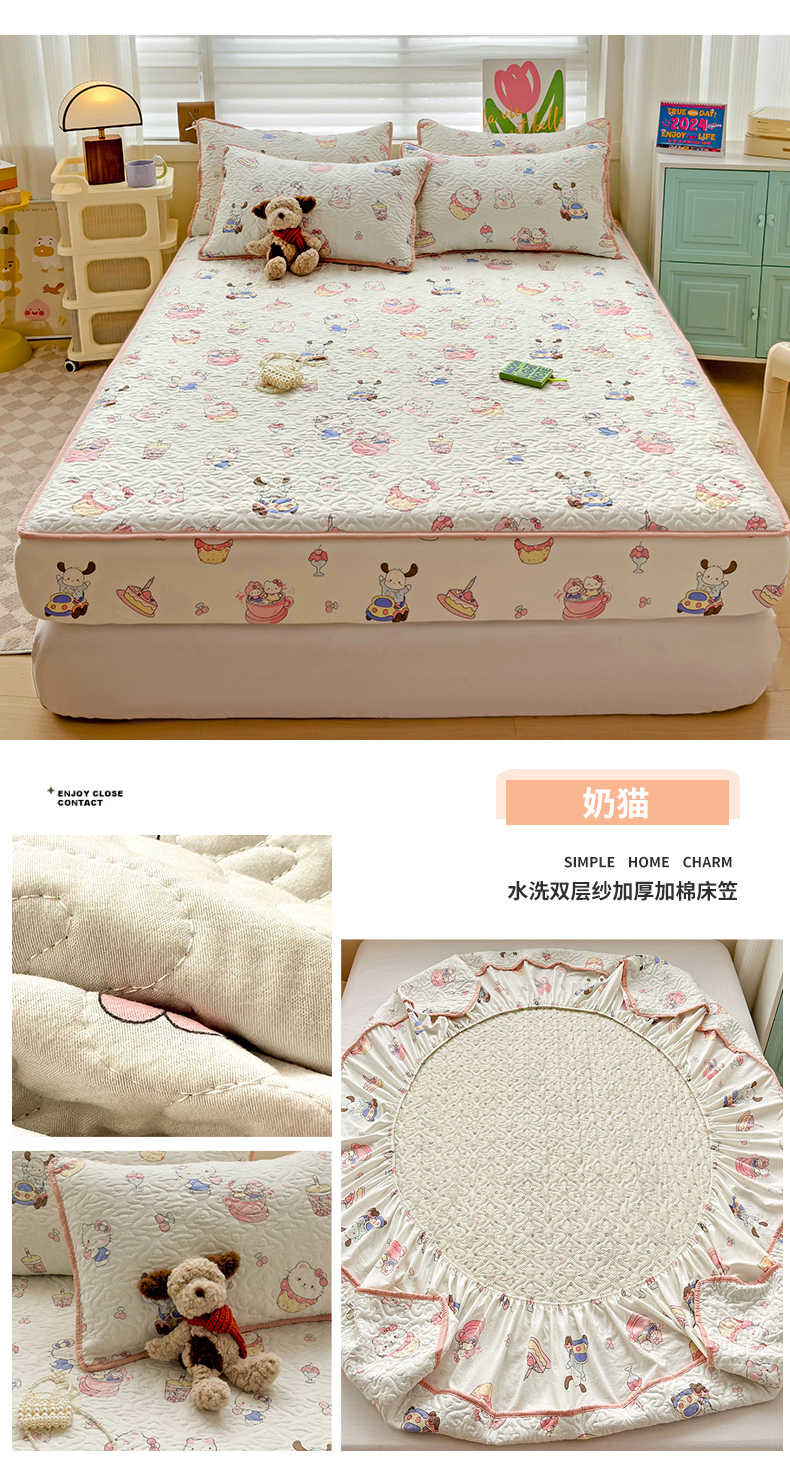 纽缦家纺 2025春夏新款夹棉床笠单床笠 奶猫