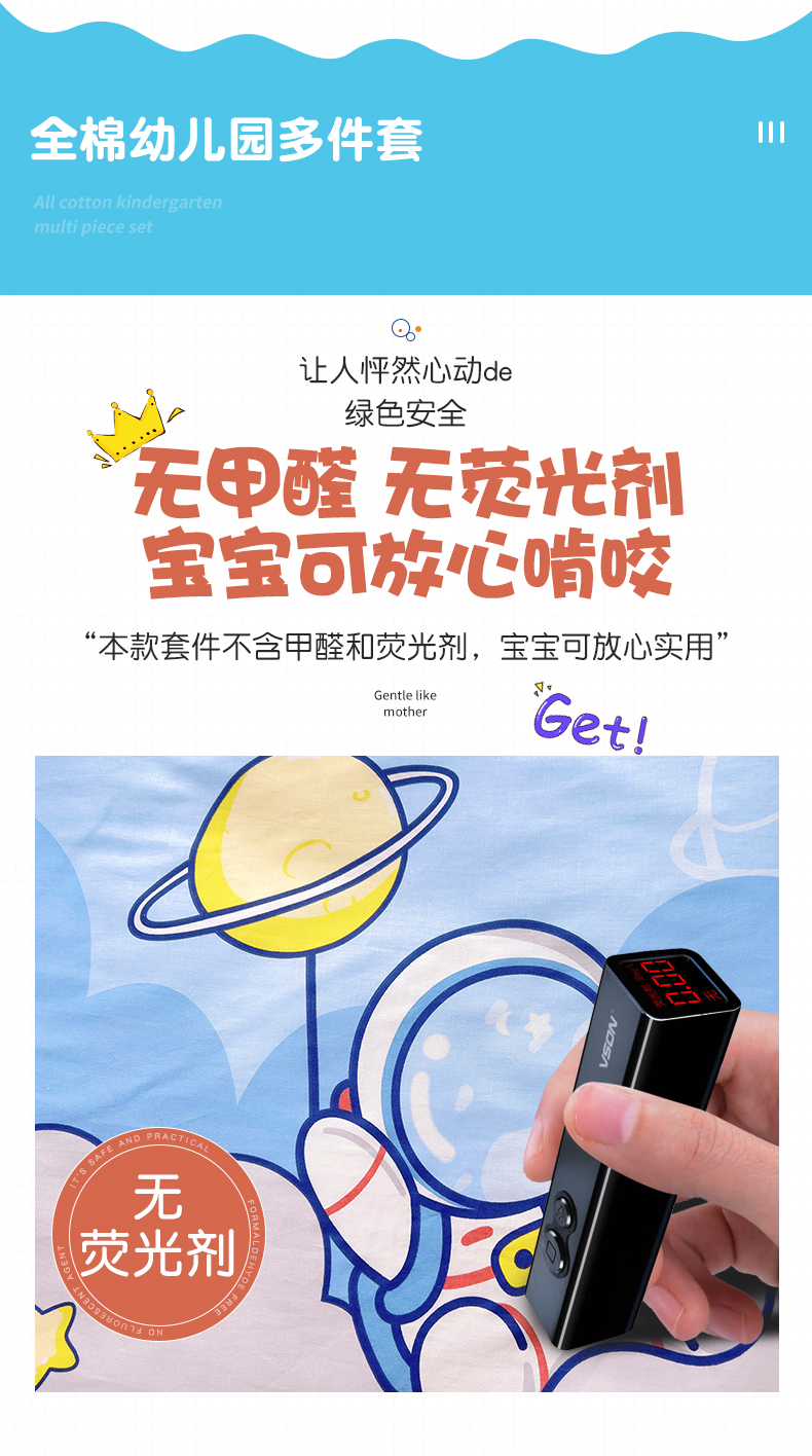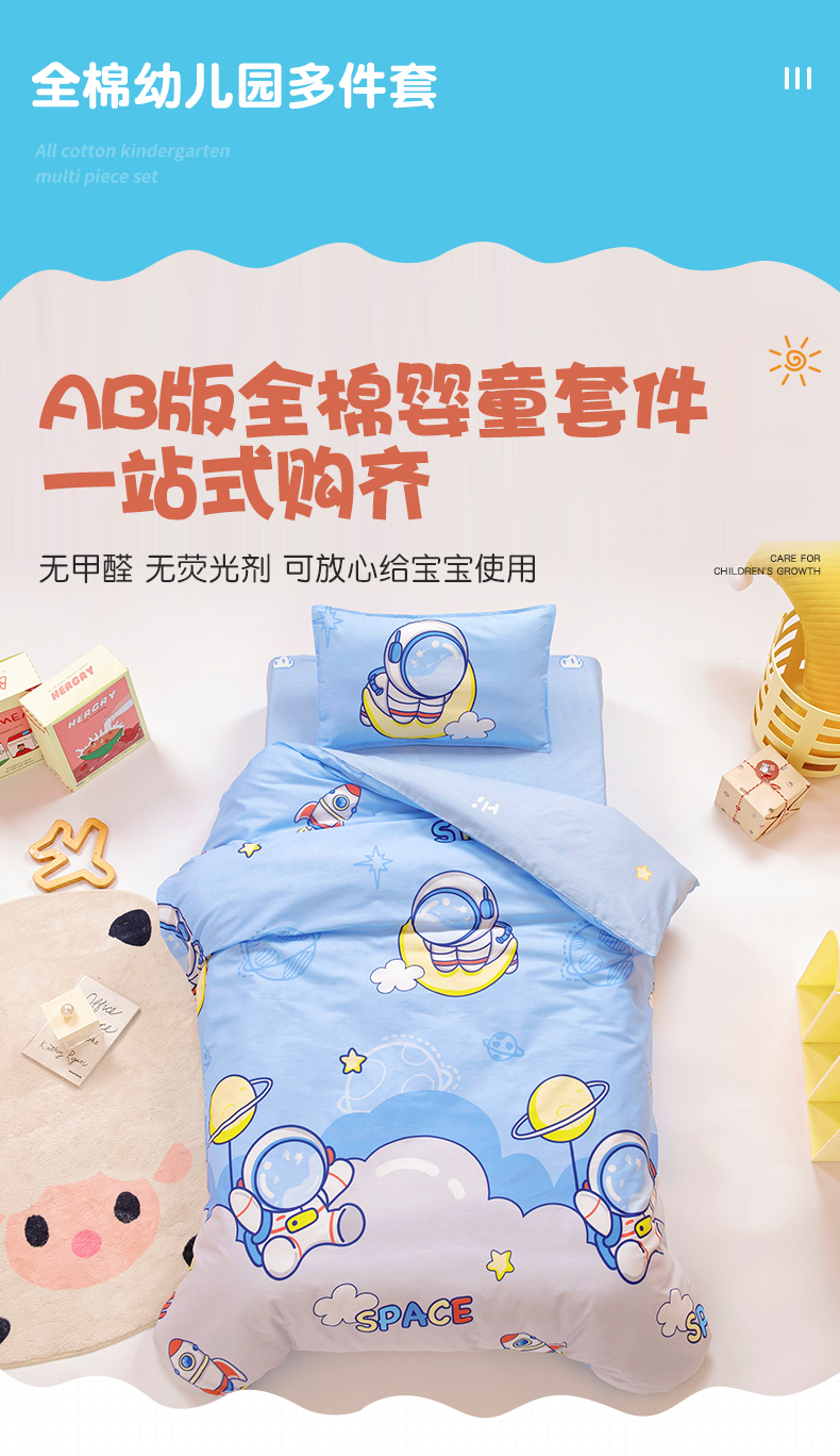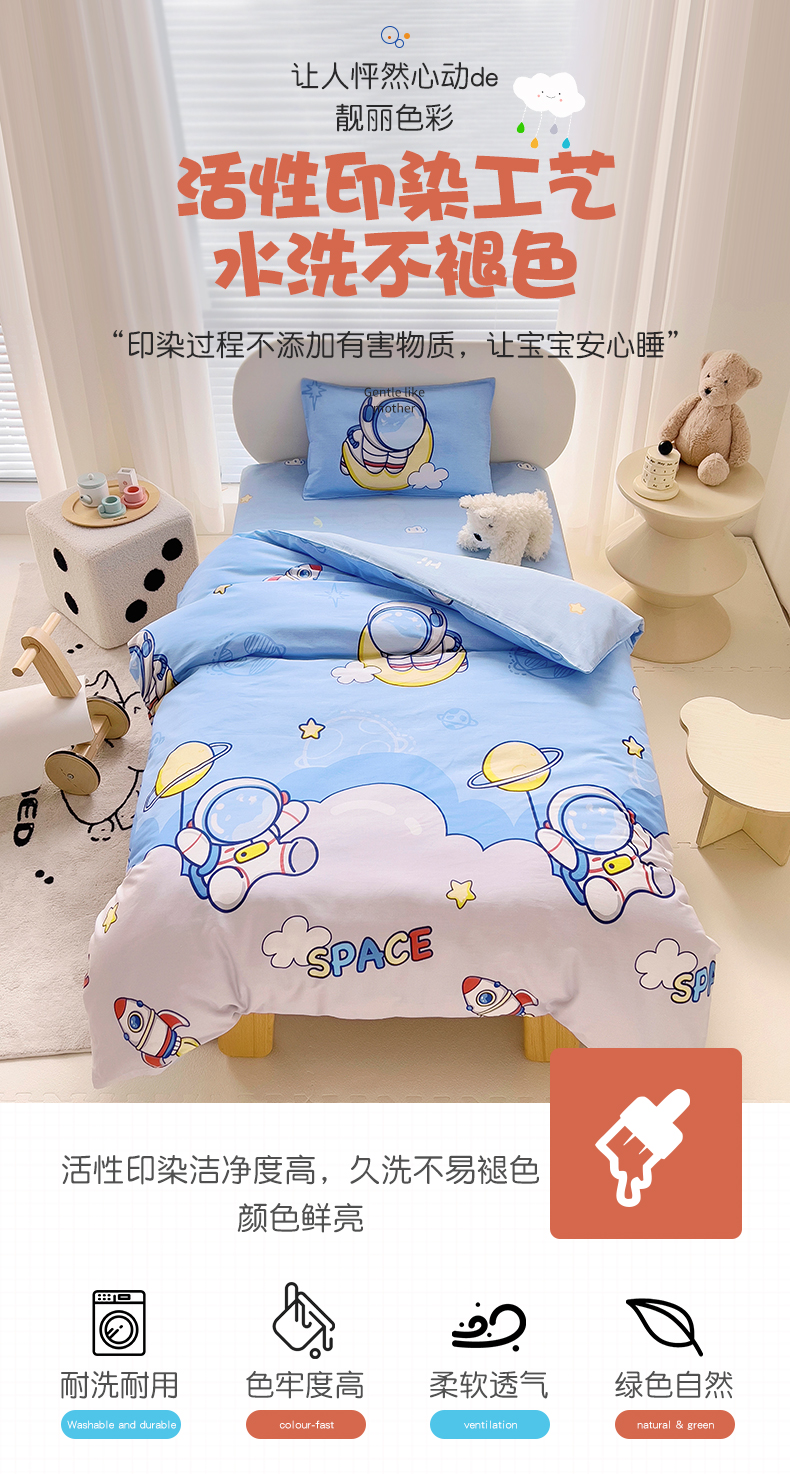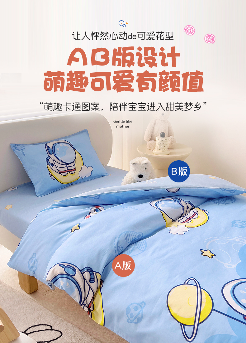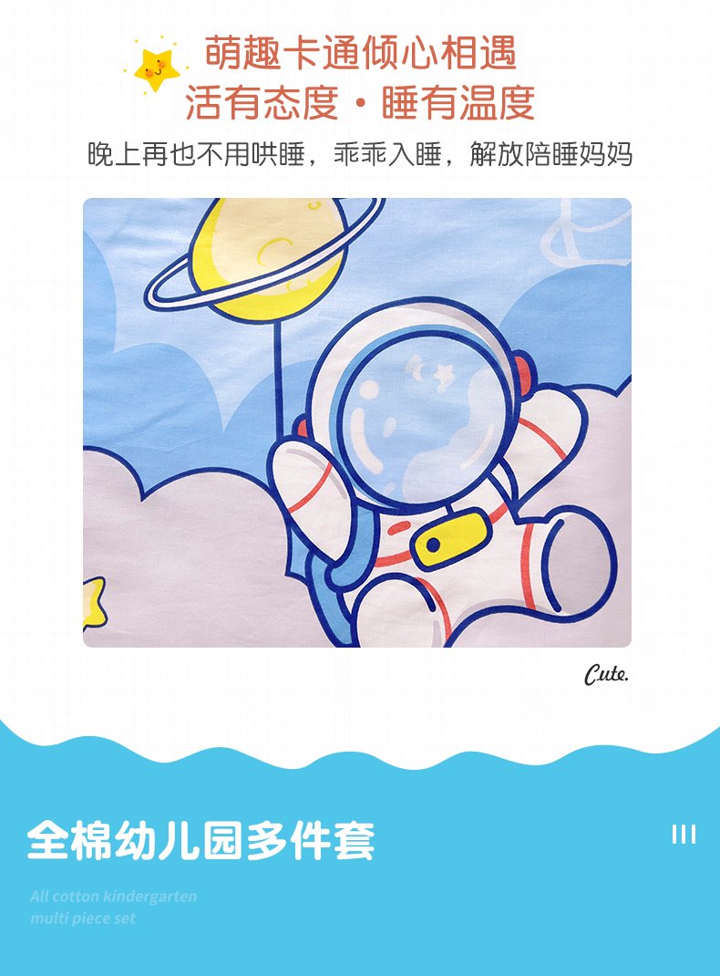 当前位置: 91家纺网 > 商品网购 > 婴童用品 > 婴童三件套 > 鱼宝2026新款全棉幼儿园套件--萌趣系列 探索星球