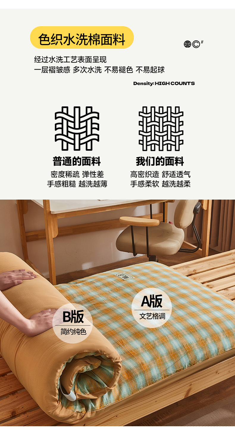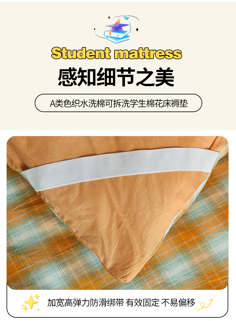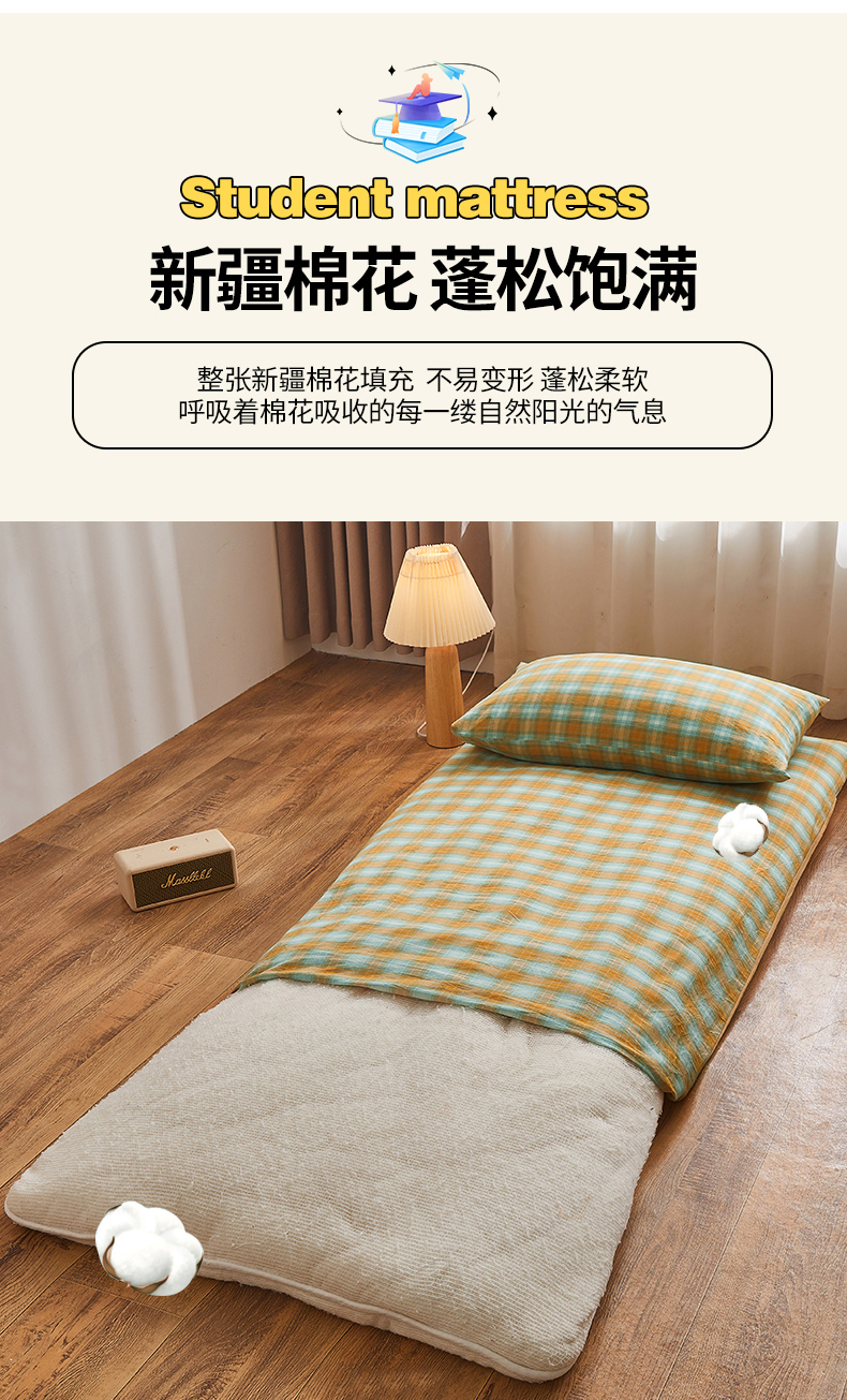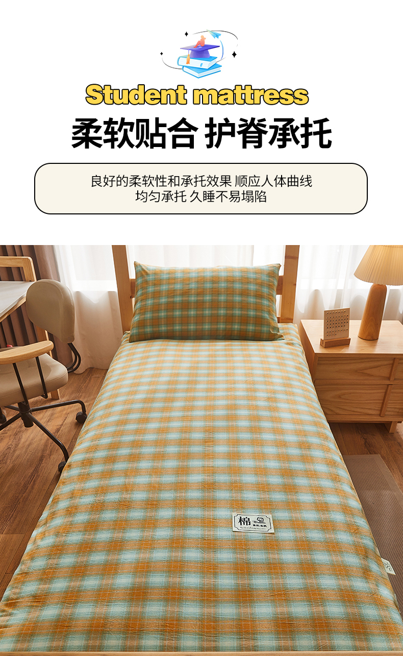 • 91家纺网 家纺一手货源 找家纺 晓时候 2025新款可拆洗新疆棉花床垫被褥子加厚冬被学生宿舍水洗棉床垫套-宿舍款 蜜桔格