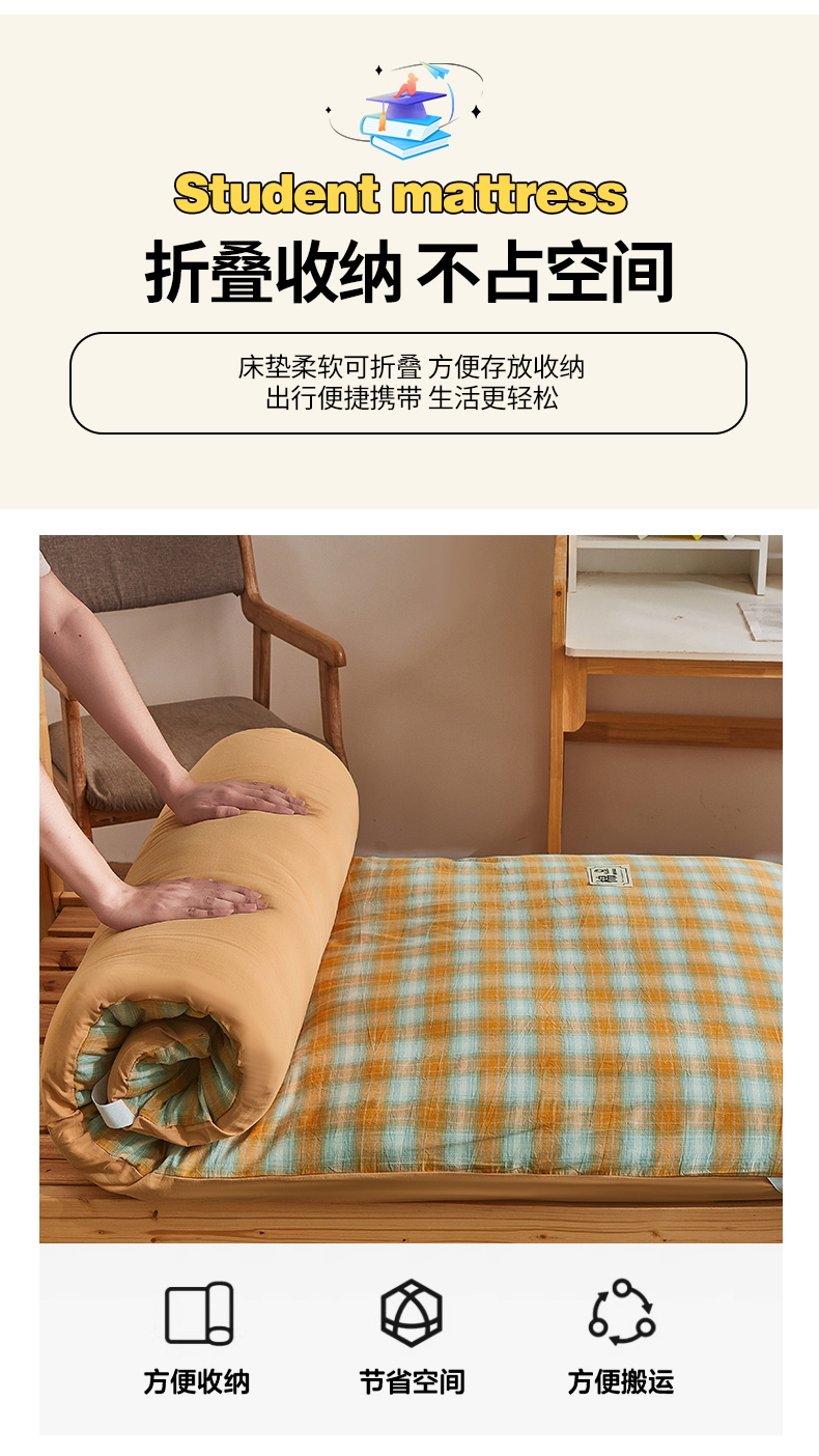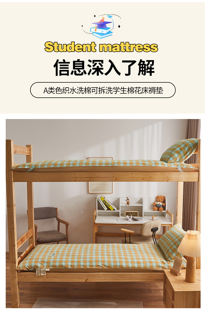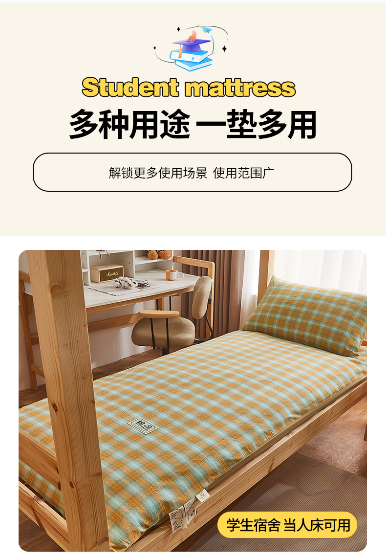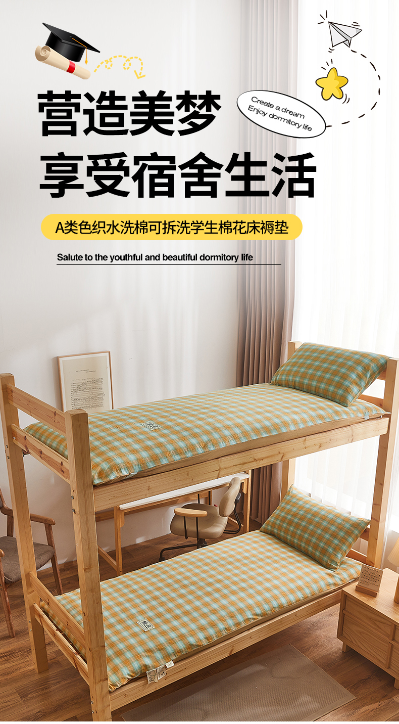 • 91家纺网 家纺一手货源 找家纺 晓时候 2025新款可拆洗新疆棉花床垫被褥子加厚冬被学生宿舍水洗棉床垫套-宿舍款 蜜桔格