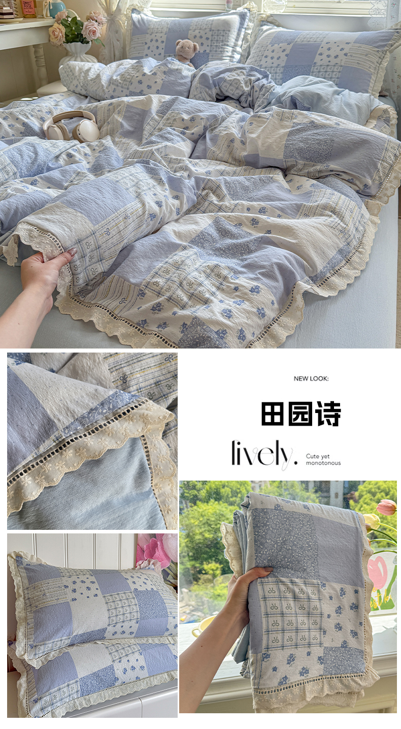 商品名称:Mata蔓塔家 2025新款云感双层纱全棉镂空花边四件套 田园诗