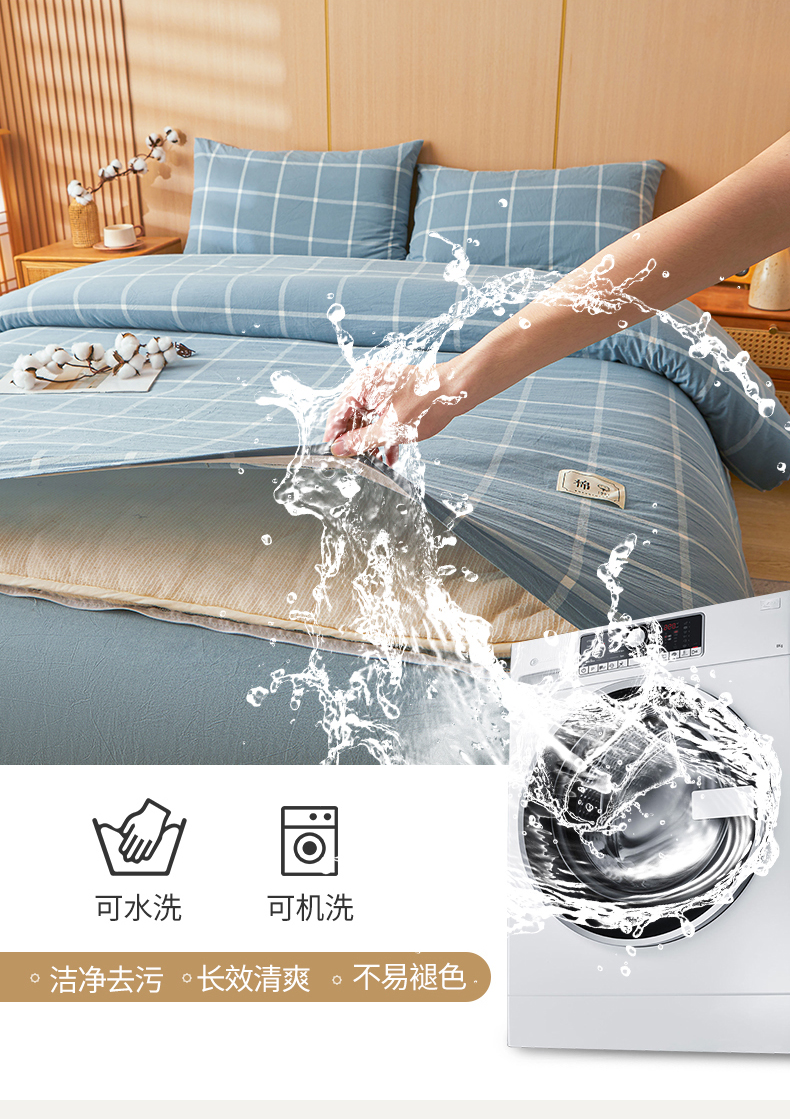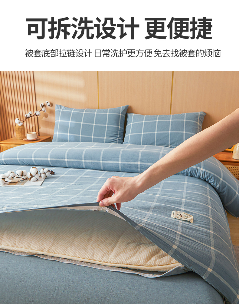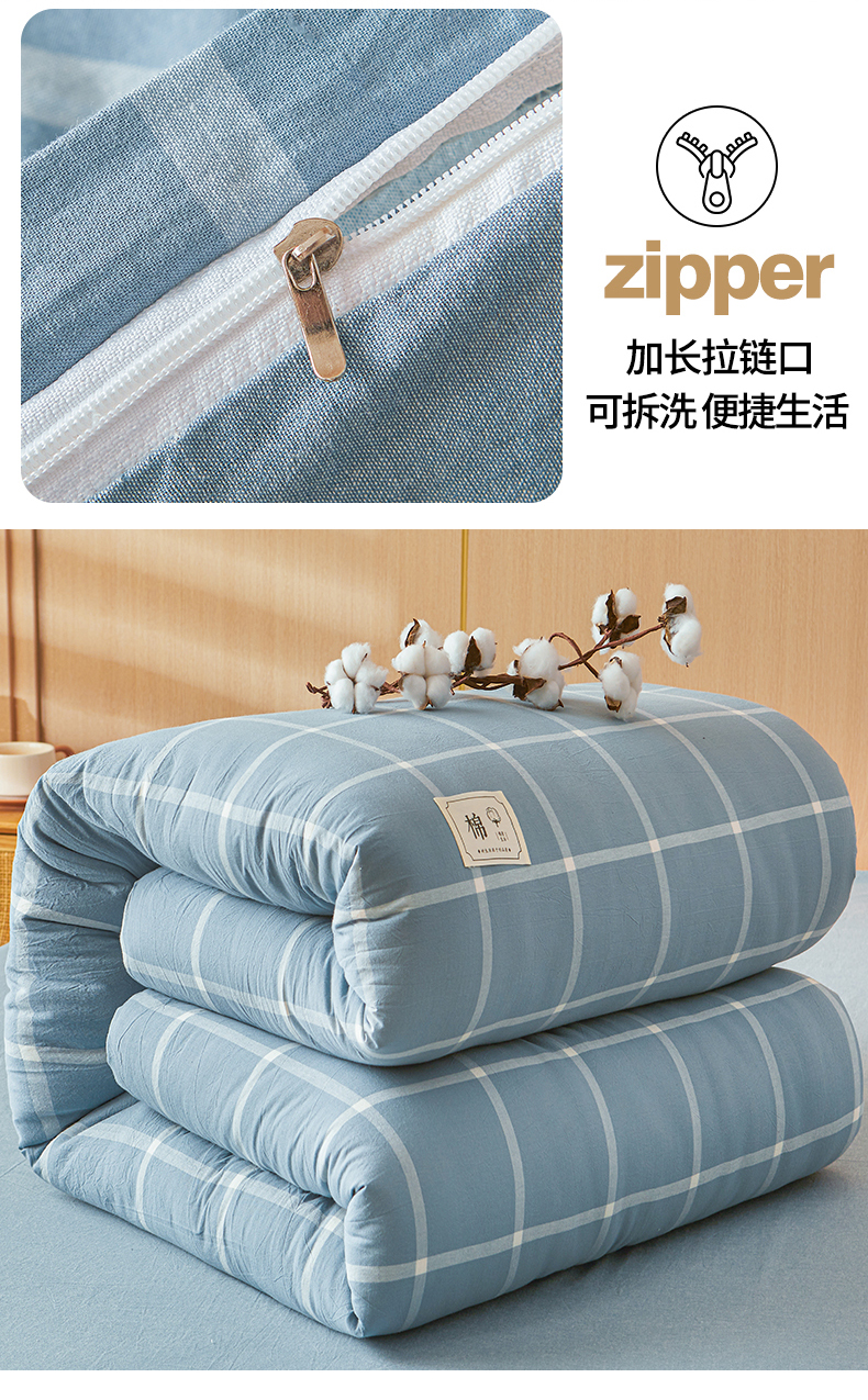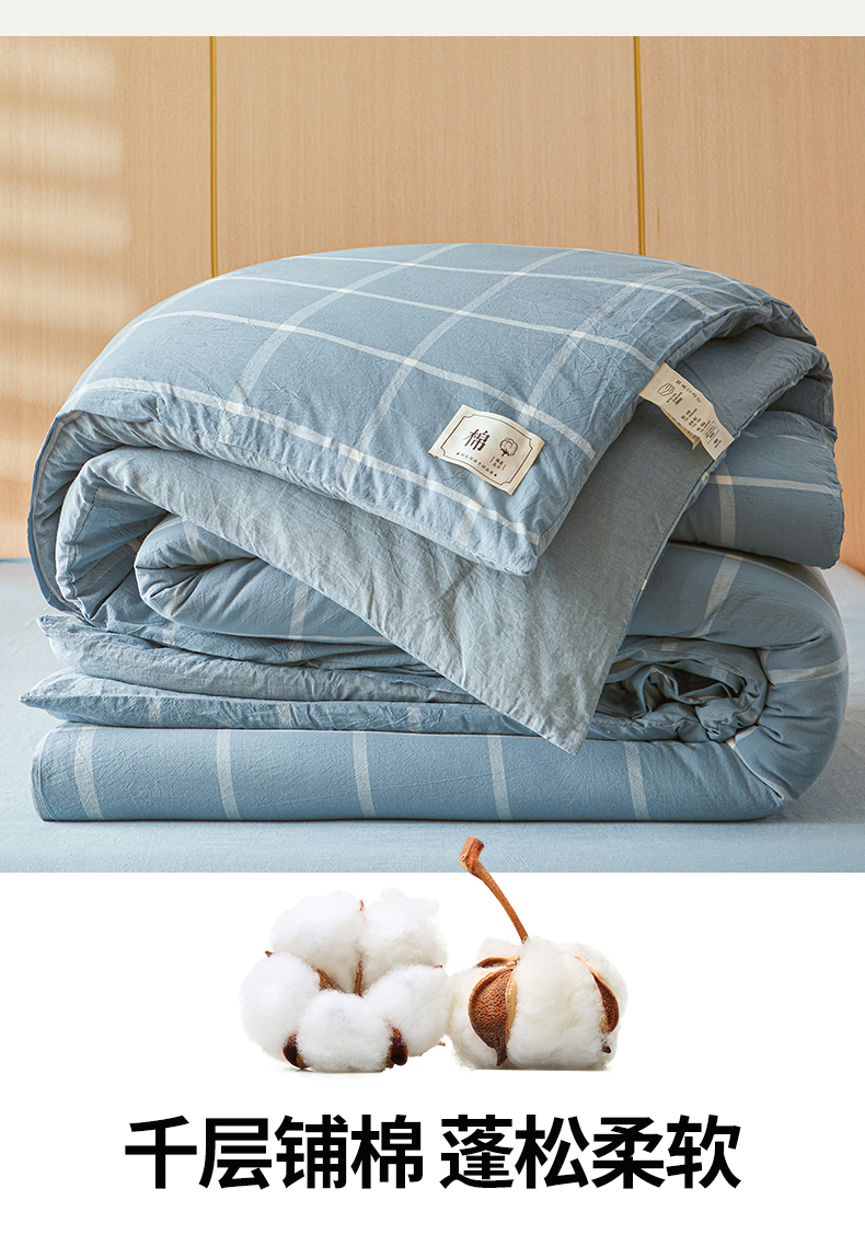 • 91家纺网 家纺一手货源 找家纺 爱屋及屋 2025新款水洗棉可拆洗棉花被被子被芯 海蓝大格