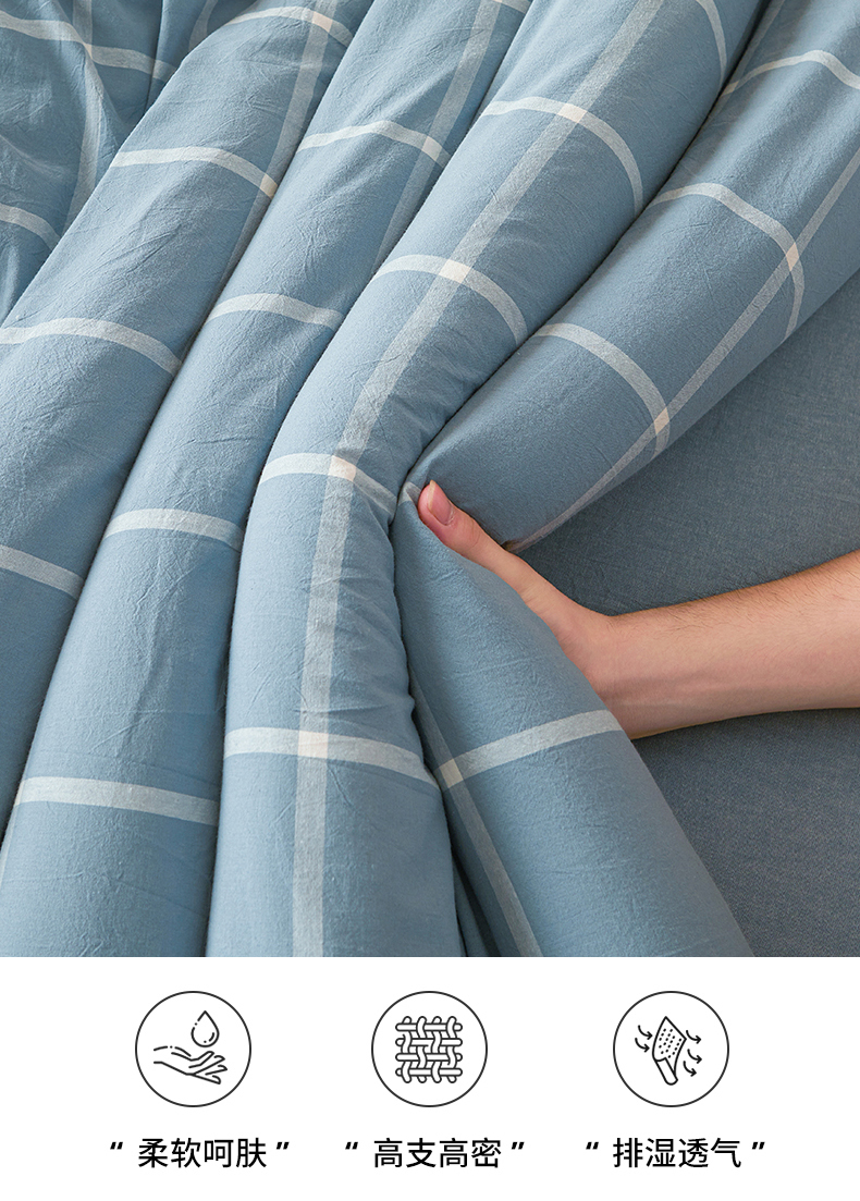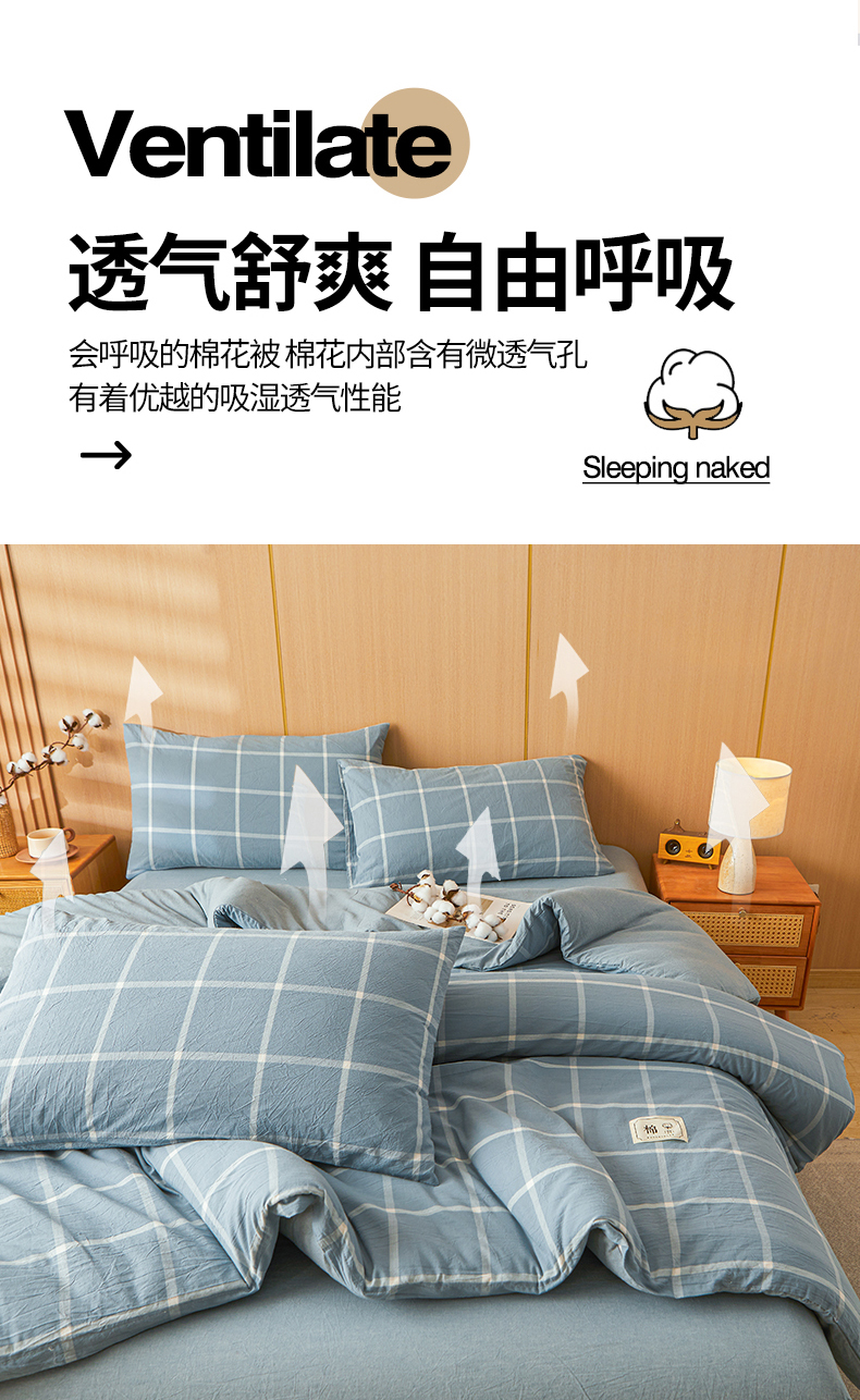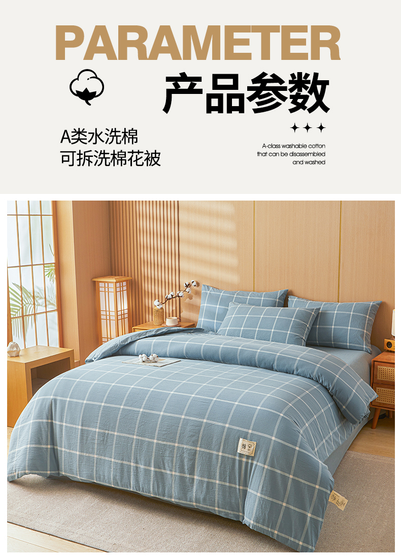 • 91家纺网 家纺一手货源 找家纺 爱屋及屋 2025新款水洗棉可拆洗棉花被被子被芯 海蓝大格