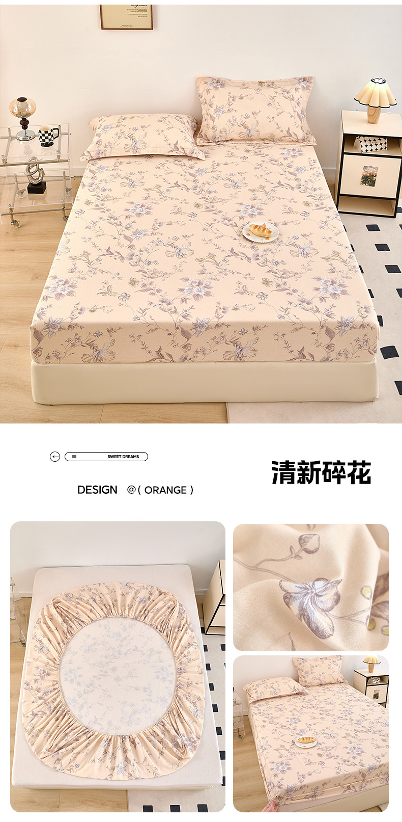 • 91家纺网 家纺一手货源 找家纺 锦罗绣 2025新款全棉双层纱印花系列单床笠 清新碎花