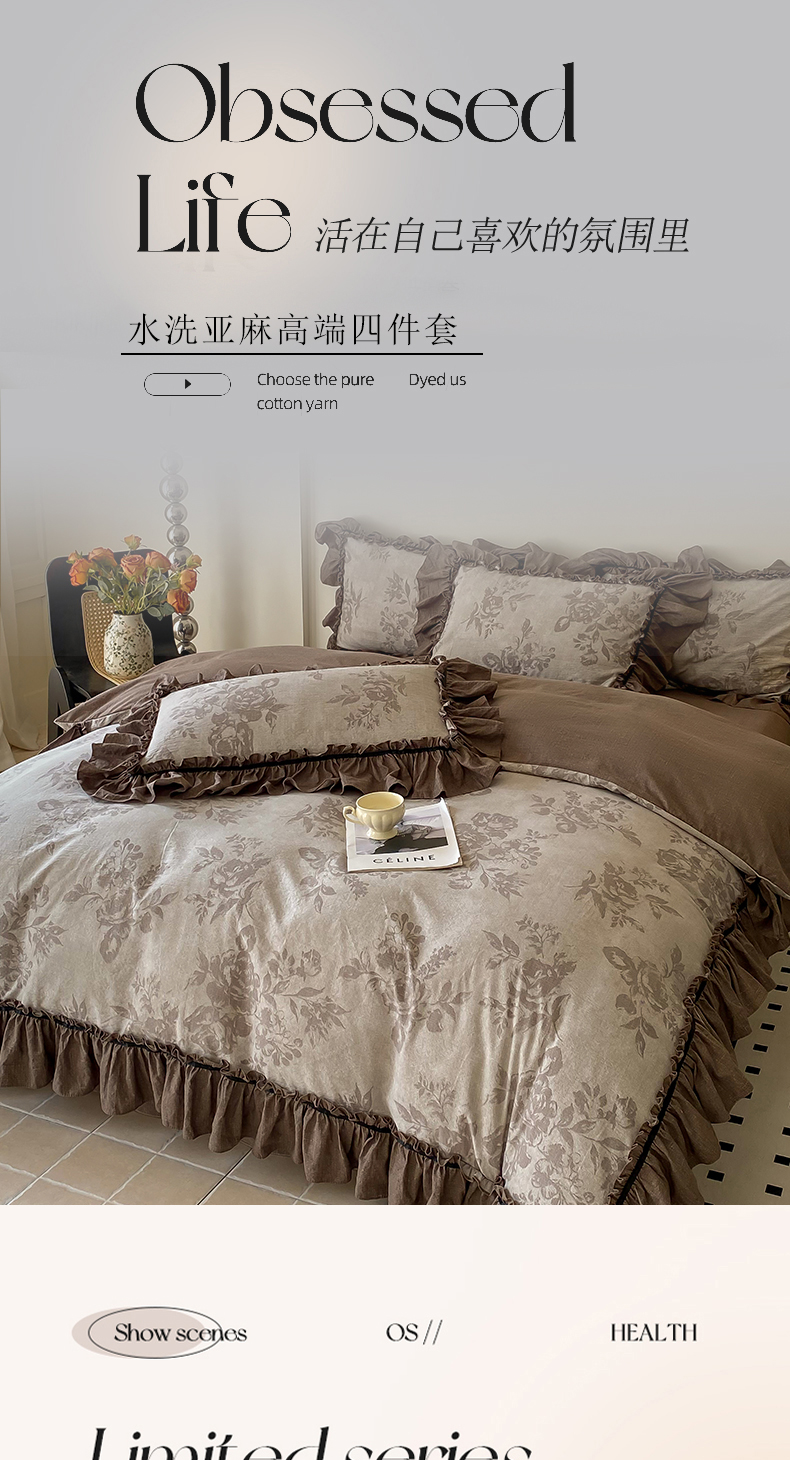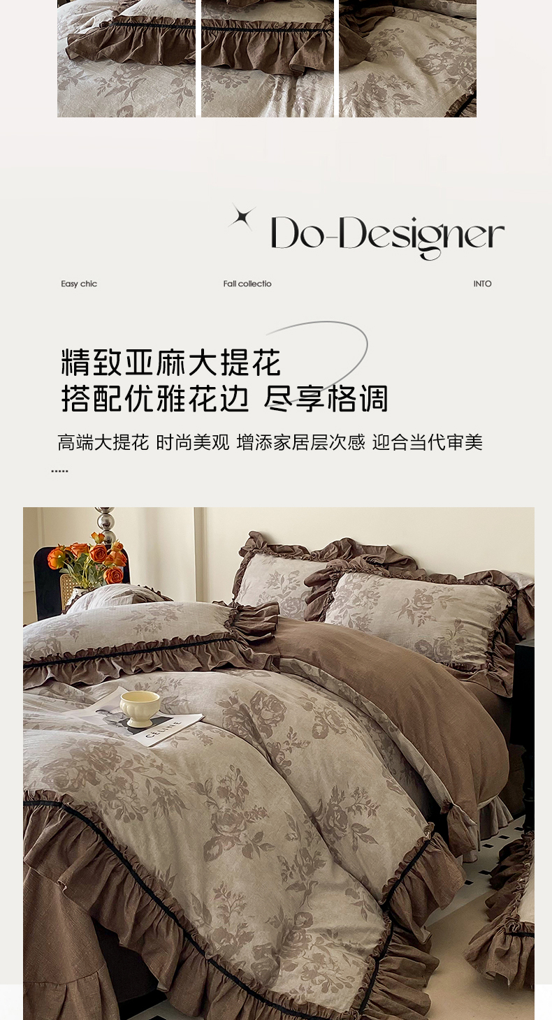当前位置: 91家纺网 > 商品网购 > 床品套件 > 四件套 > 其它四件套 > 大麦家纺 2025新款复古风高端提花水洗亚麻原麻四件套 秋意浓