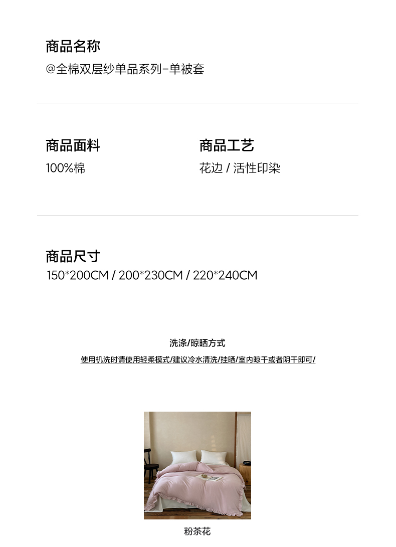 商品名称:三味舒屋 2025新款花边美学全棉双层纱单品单被套 复古棕