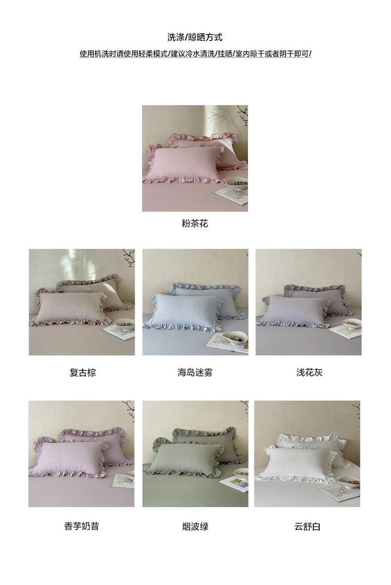 商品名称:三味舒屋 2025新款花边美学全棉双层纱单品单枕套 海岛迷雾