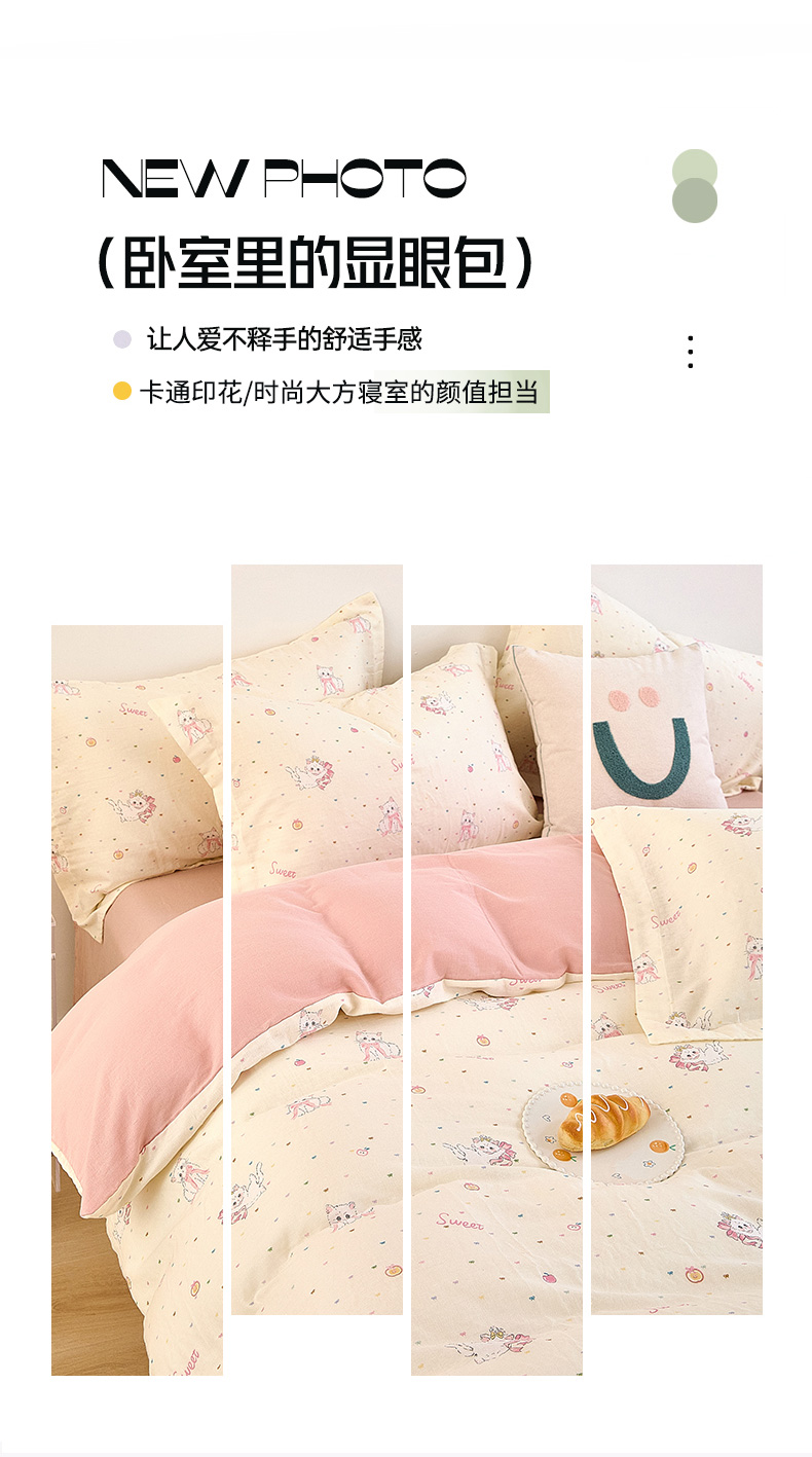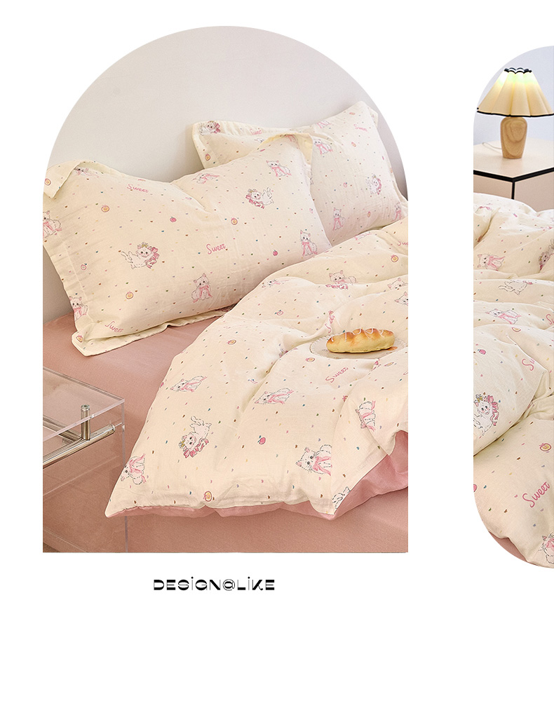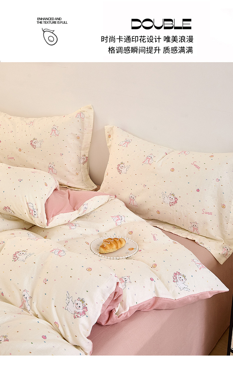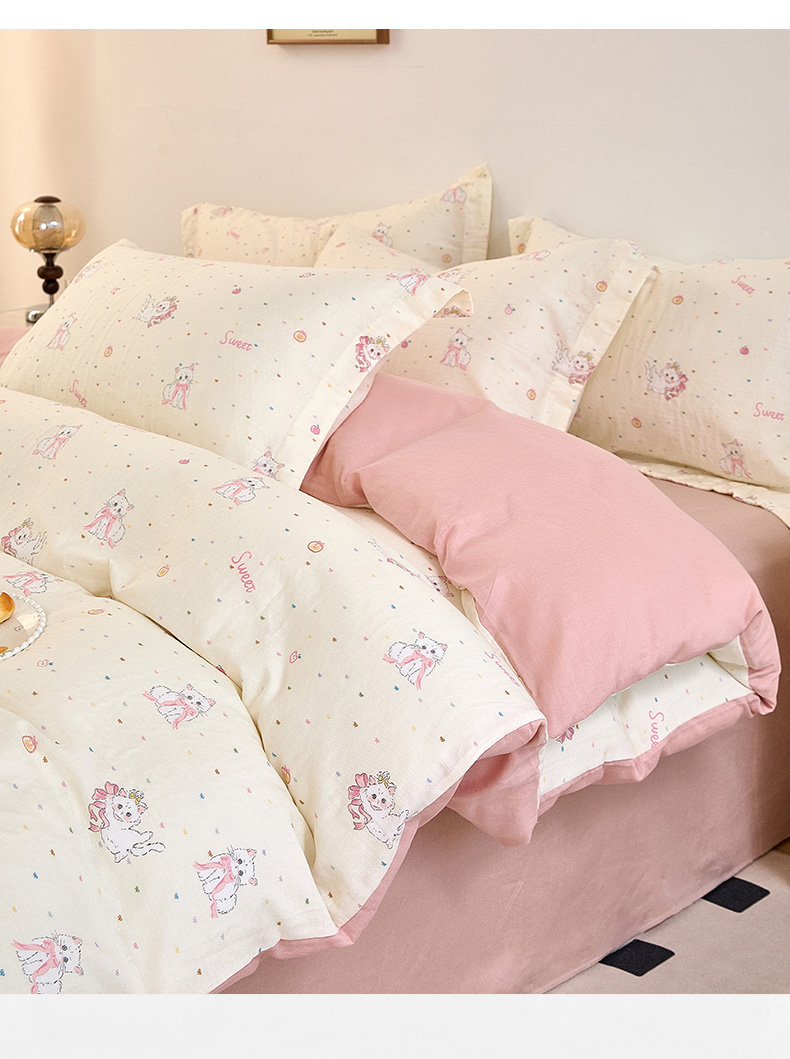 当前位置: 91家纺网 > 商品网购 > 床品套件 > 四件套 > 全棉普通四件套 > 2025新款全棉双层纱印花四件套(第二批)精灵猫咪